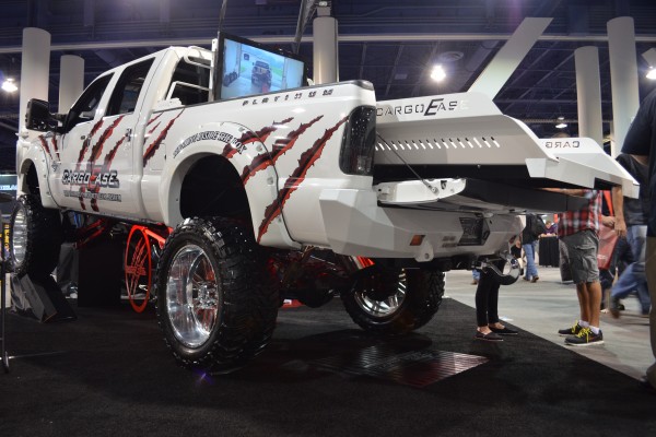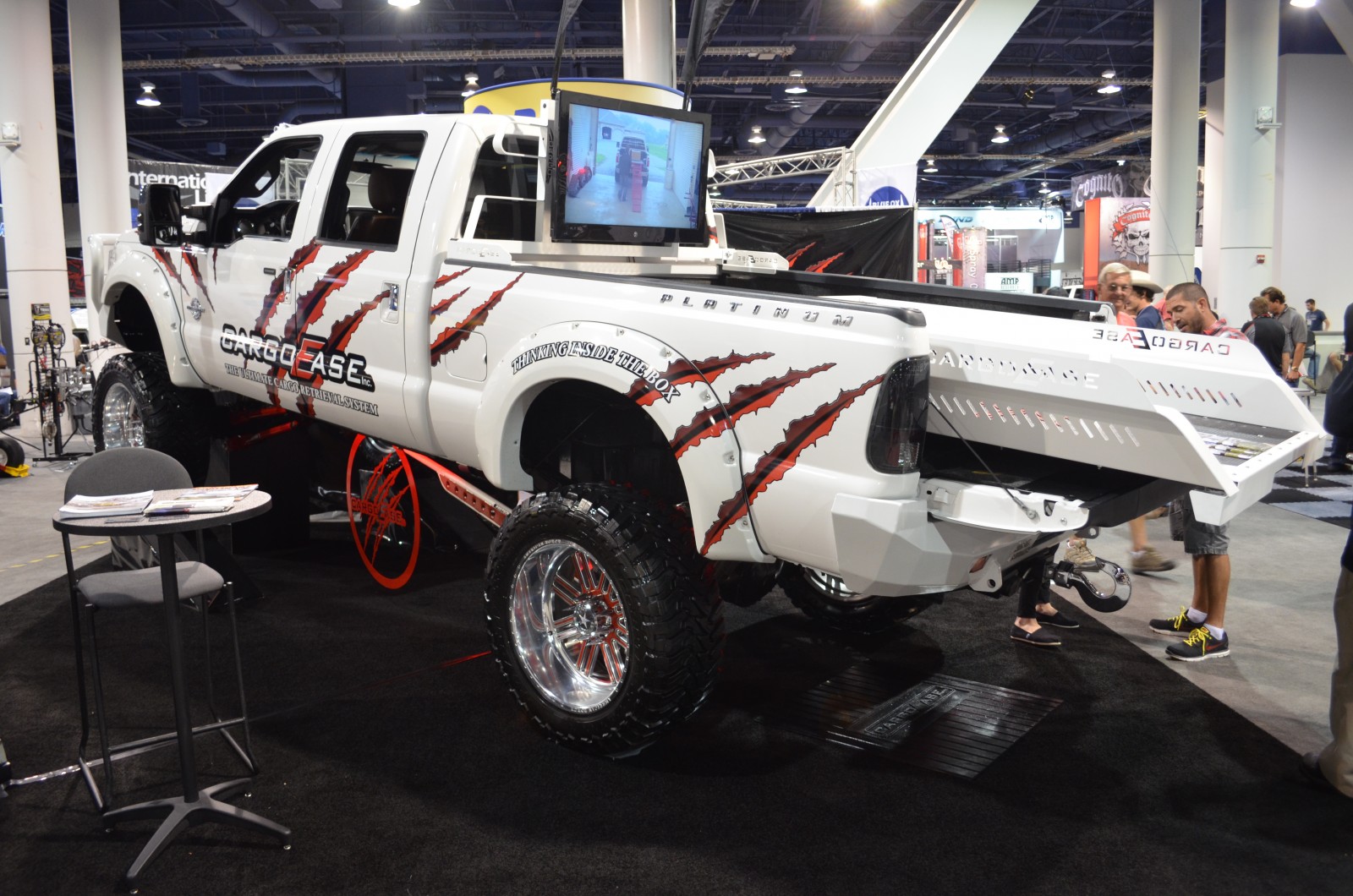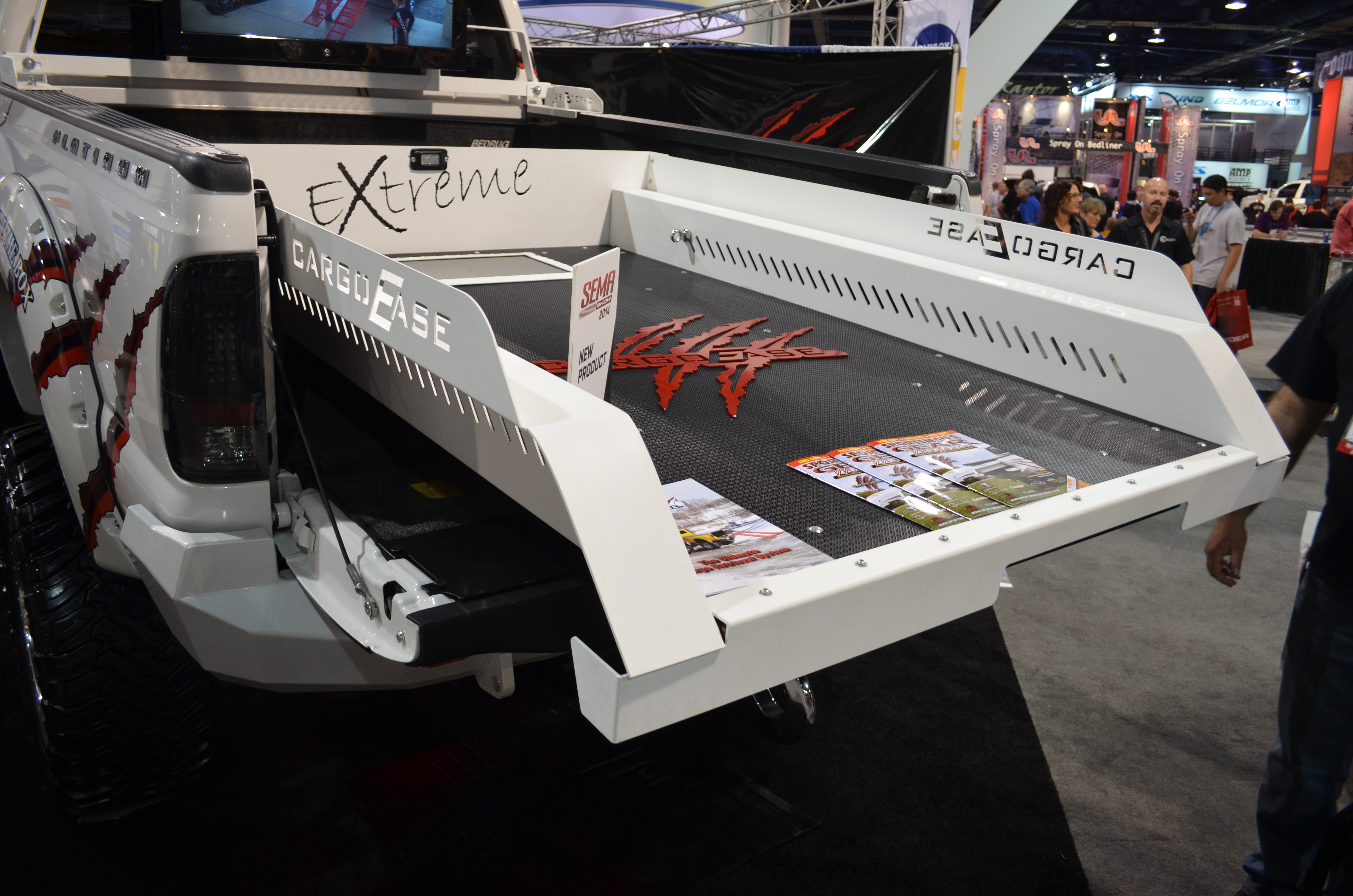 We stopped by the company’s booth at the SEMA Show today to take a look at the new product offerings and functionality of a Cargo Ease truck bed cargo slide.
