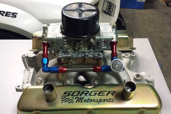Edlebrock and Holley provide the air and fuel induction duties. The manifold is an Edelbrock Victor Jr. single plane that helps boost power from 3,500 to 8,000 rpm, right in the meat of a road racer’s operating range. The carburetor is a tried-and-true Holley 750 cfm double pumper. A Summit Racing dual-feed fuel line will keep the carburetor fed.
