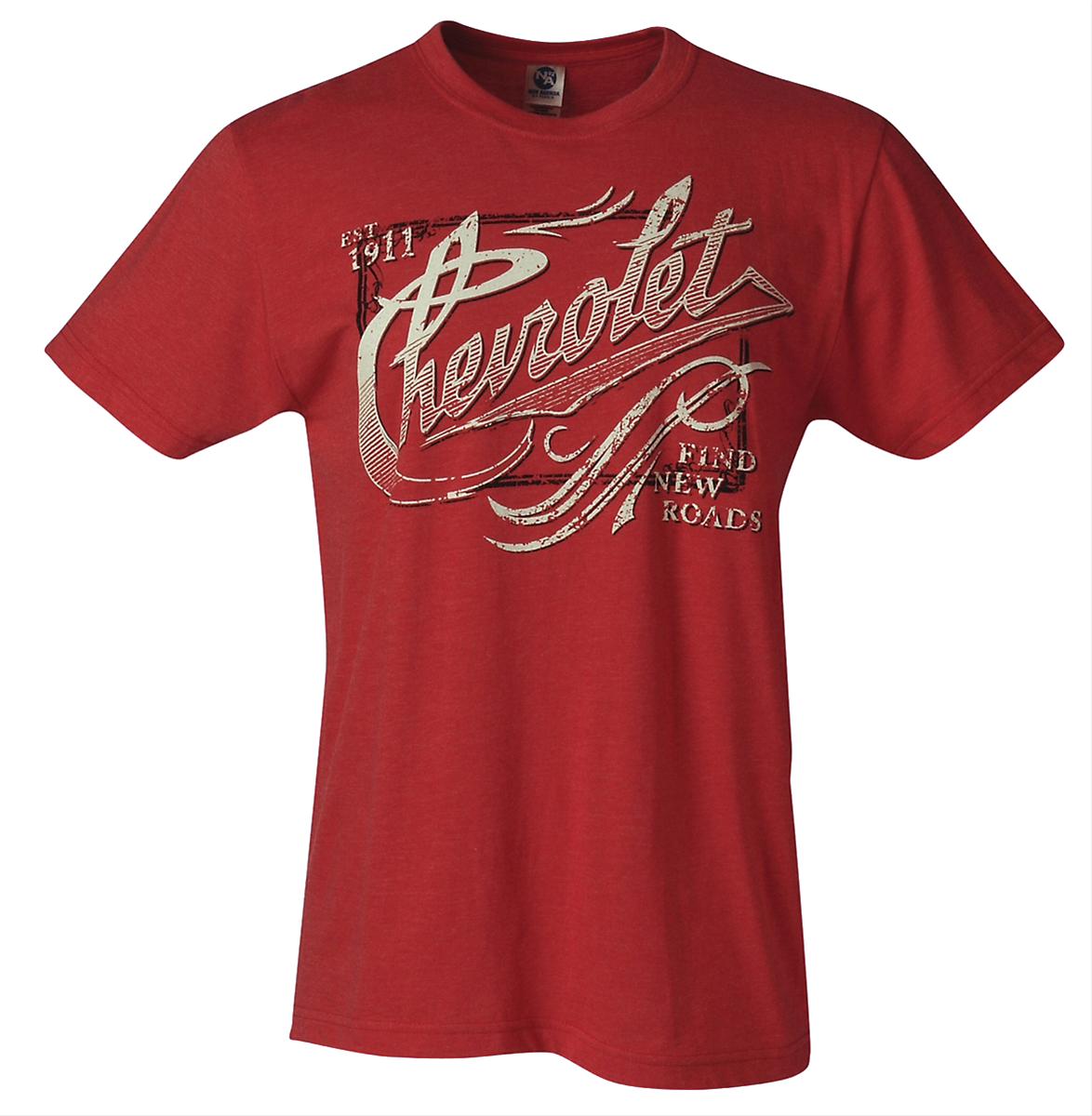 This classic cotton Chevrolet Find New Roads T-shirt features classic Chevy graphics and is weathered for a vintage feel.