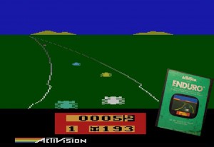 Enduro was a pretty awesome game, too. You relied on finesse more than speed, and the scenery transitioned from day to night. Occasionally, the road would turn white and your car’s handling would change to simulate driving on ice—a groundbreaking innovation for the era.