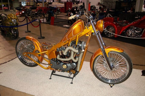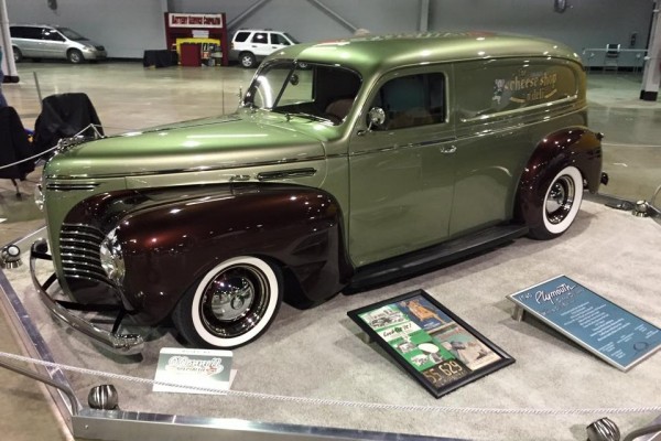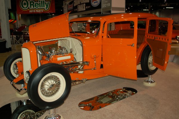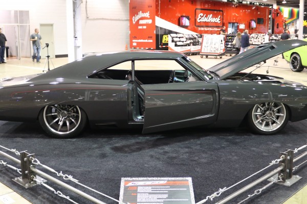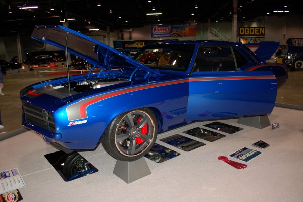 The Legend Cup goes to an outstanding vehicle being shown for the first time at the Chicago World of Wheels. With an emphasis on style and design, the 2015 Legend Cup went to the “Sliced” 1968 Dodge Charger pictured above. Built by the Roadster Shop, it features a twin-turbo V10 engine, full tube chassis, Dodge Viper front spindles and independent rear suspension, hand-formed aluminum sheetmetal, and loads of fabrication work.