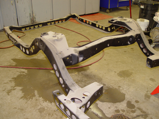 For example, in an effort to remain on top of the Super Stock class in the 1960s, Pontiac drilled approximately 120 holes into the frame rails (see image below) of a select few of its Catalinas for 1963. The idea was to reduce as much weight as possible for added speed while maintaining the vehicle’s structural integrity.