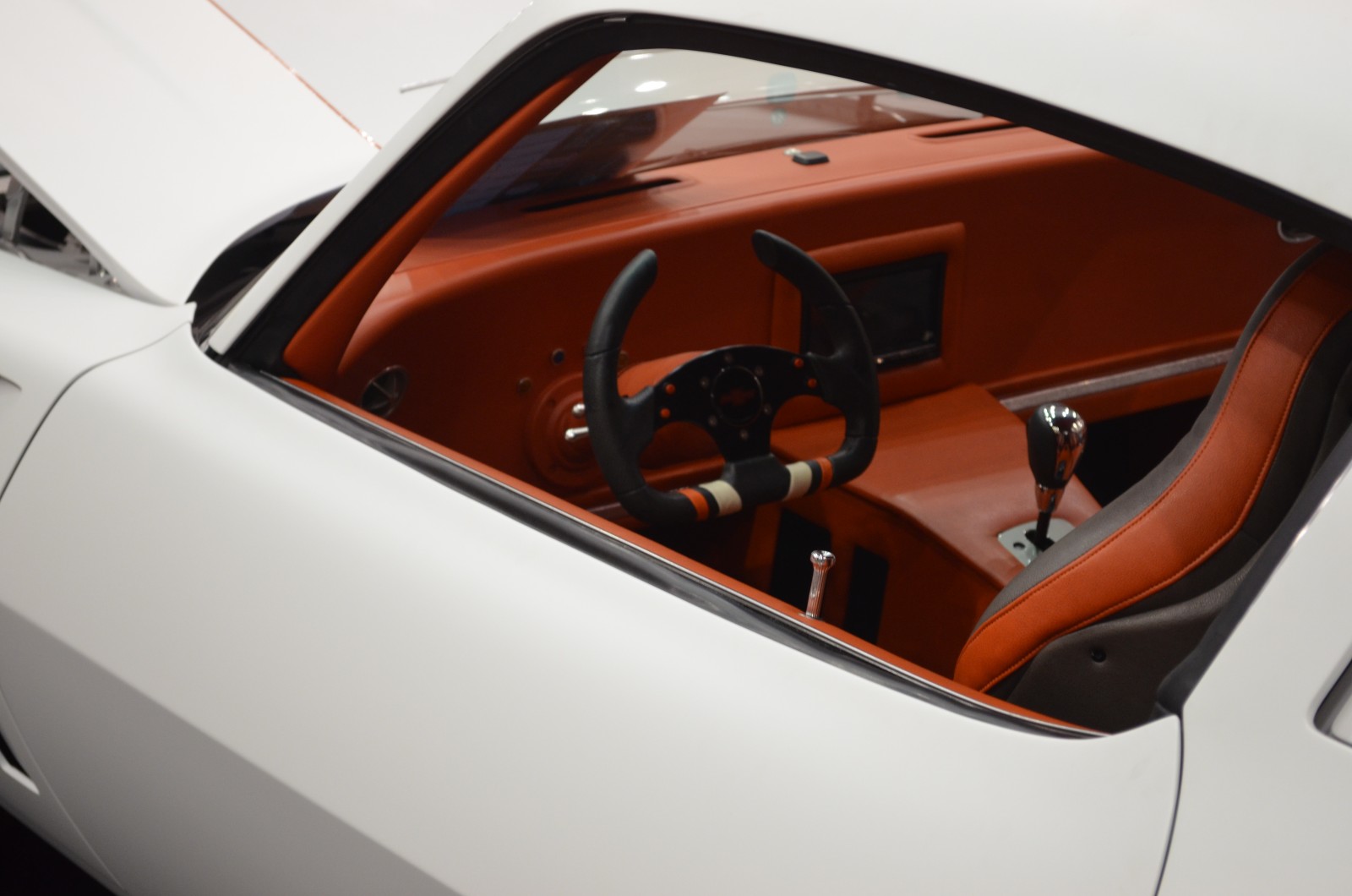 The car is outfitted with SSBC performance brakes. It features a custom interior with Corbeau sports seats.