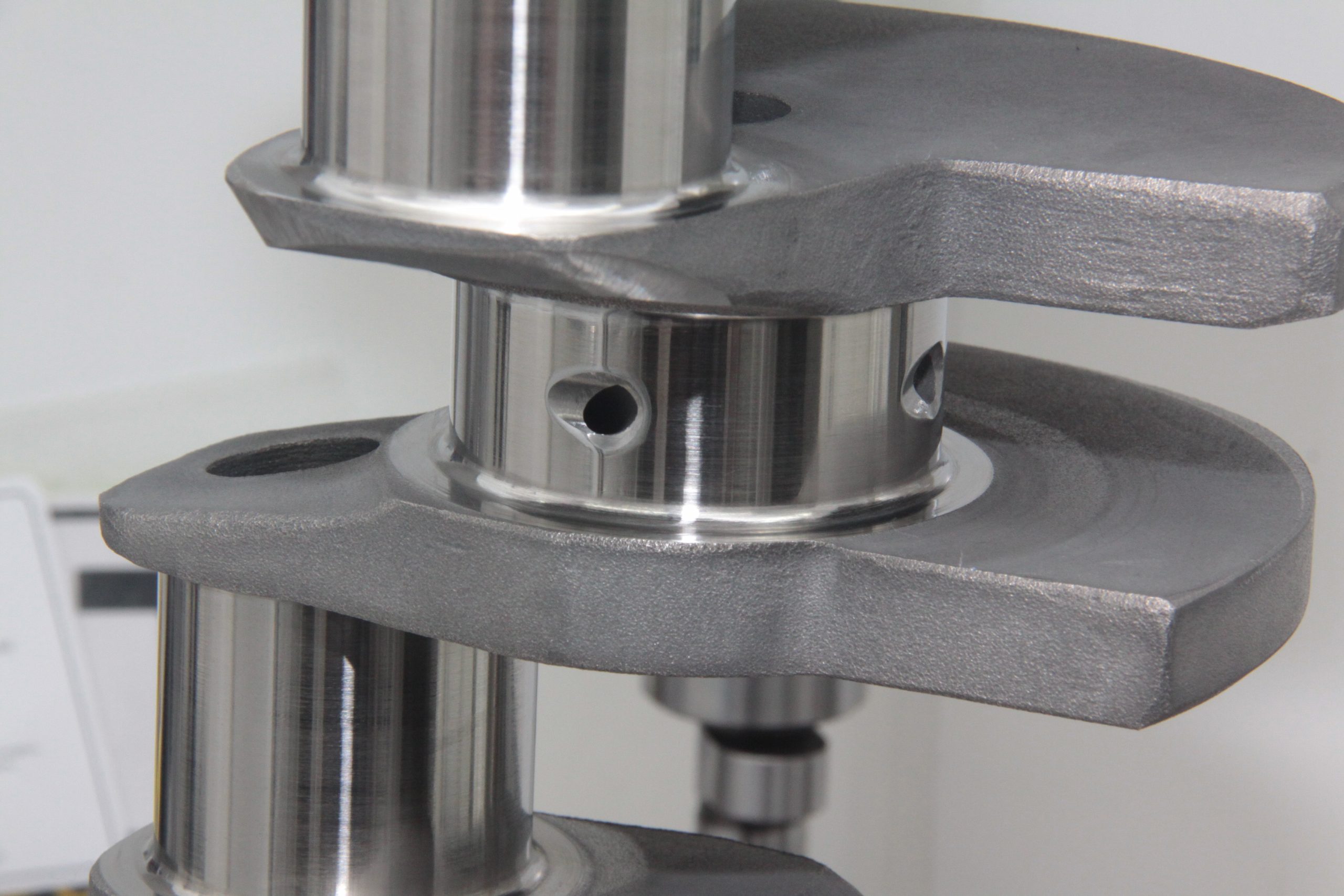 Crankshafts may be manufactured with a variety of additional process to improve fatigue resistance or lighten the overall mass. For example, many steel crankshafts can be induction hardened, shot peened, or cryogenically treated for added strength. You can learn more about those processes here. Crankshafts may also have radiused journal fillets, which place added material where the journals meet the crank cheeks—a typical weak point. To lighten the overall weight, crankshafts may also be gun-drilled or come with slotted counterweights.