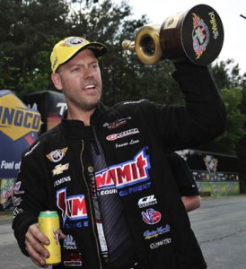 Capps, the Gainesville and Houston winner, beat Alexis DeJoria, #1 qualifier Cruz Pedregon and defending world champ Matt Hagan on his way to the final round. Capps retained the points lead in Funny Car.