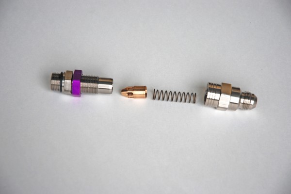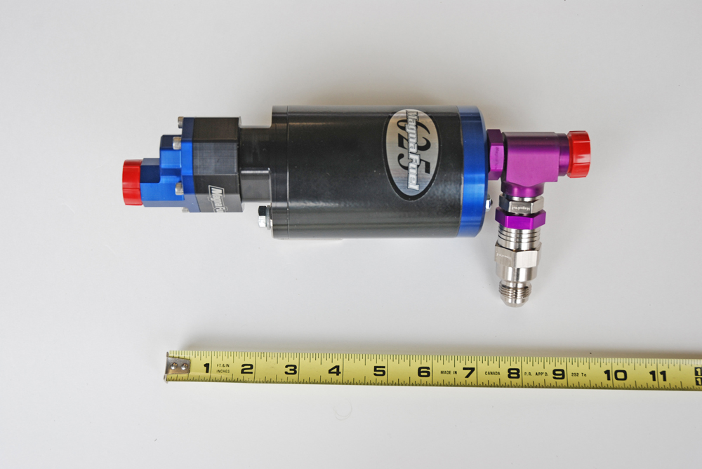 MagnaFuel’s 625 pump can be used in either fuel injected or carbureted applications. To make it work for carbs, MagnaFuel offers a bypass package for these pumps, and it is much like the system used in the big Pro Stock fuel delivery systems. It simply threads on the outlet of the pump. In operation, you set the final outlet pressure (from the pump to the regulator) you desire by swapping out by-pass springs. The balance of the fuel (excess) is bypassed and sent back to the tank. That process eliminates the “dead-heading” dilemma that can plague some pumps on the street.