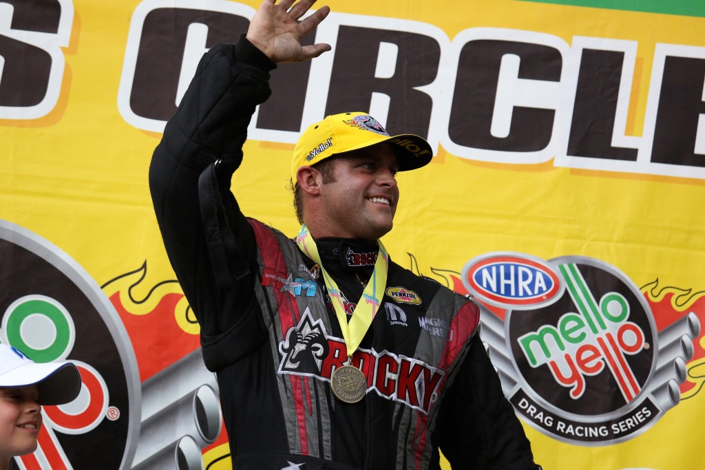 Richie Crampton in Top Fuel) and Erica Enders-Stevens in Pro Stock were also winners in their respective categories at the NHRA Mello Yello Drag Racing Series event at the historic dragstrip in northeast Tennessee.