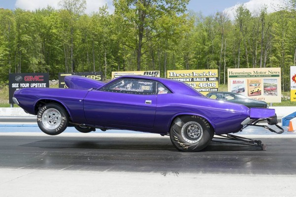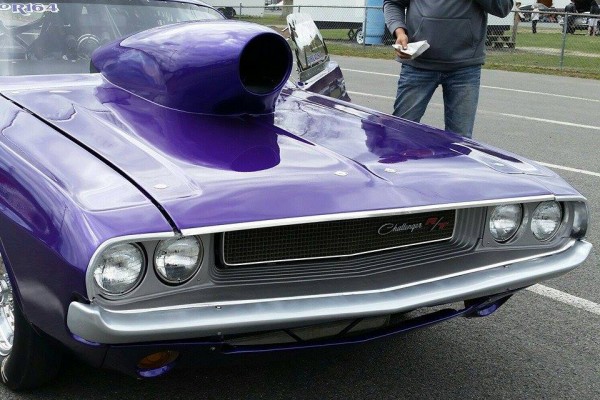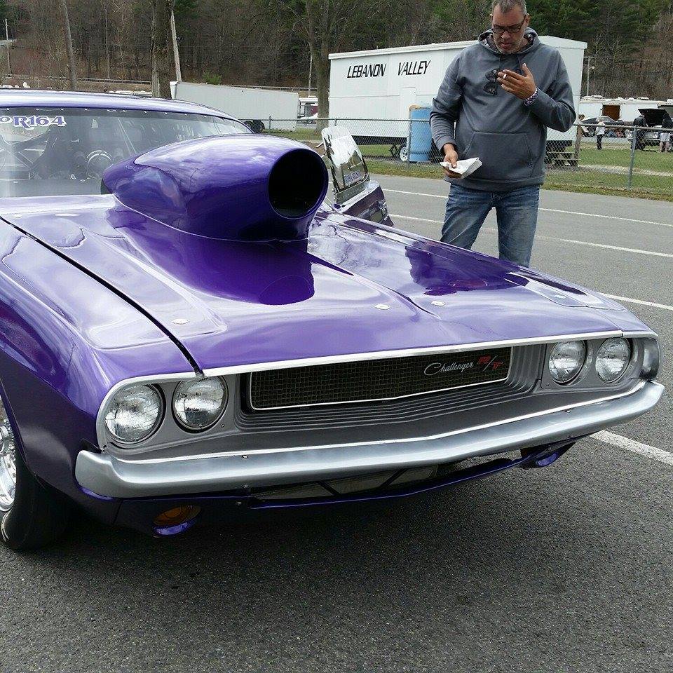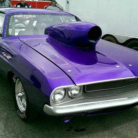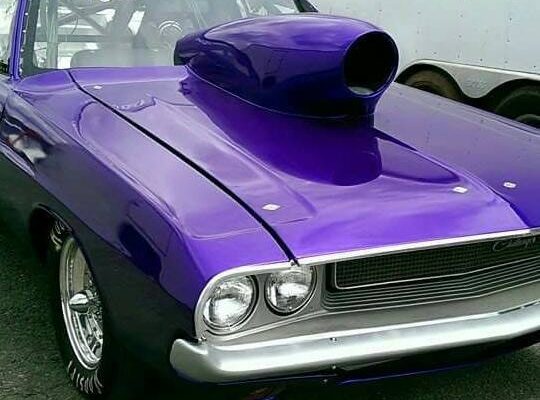 “70 Dodge Challenger…526 cub wedge makes 887 HP on alky…G-Force clutchless 5-speed…runs 8.80 @150 mph…Car built entirely by me in a one-car garage in 1 year. All the fabrication, welding, tin knocking and body. S&W back half w/ Fab9 rear…Bob’s Fabrication tubular front K member and upper and lower control arms w/ Flaming River Rack…AFCO double adj shocks up front…Qa1 double adj out back…Lakewood bellhousing…Boninfante single disc adj clutch…Strange axles, spool, centersection…Wildwood front brakes, Aerospace rear…fiberglass hood, trunk, bumpers, fenders, valances and doors…Ron’s fuel injection…Edelbrock aluminum Victor max wedge heads and intake…Comp Cams roller…Manton push rods…Manley valve gear…Hughes roller rockers…KB oil pump…Stef’s Oil Pan…Milodon gear drive…Aerospace vacuum pump…East Coast Auto Electric mini alternator…Painless Wiring…Turbo Start 16v battery.”