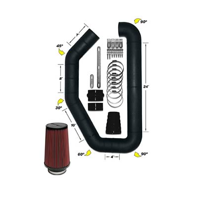 Think you can do better than the manufacturers? This kit includes everything you need to custom build and route your air intake system for maximum performance. You get multiple sections of plastic tubes and bends, a conical air filter, and all necessary mounting hardware.