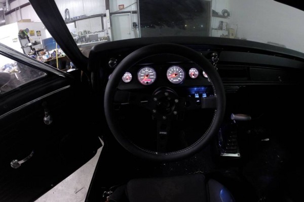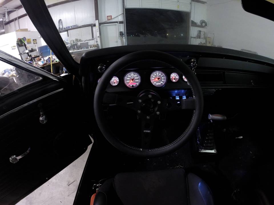 “As far as brakes and suspension, it has 4-wheel power disc thanks to a front conversion and the late model rear end, 1 3/8″ front sway bar, 1″ rear from Hotchkis, and QA1 Stocker Star Shocks all the way around.”