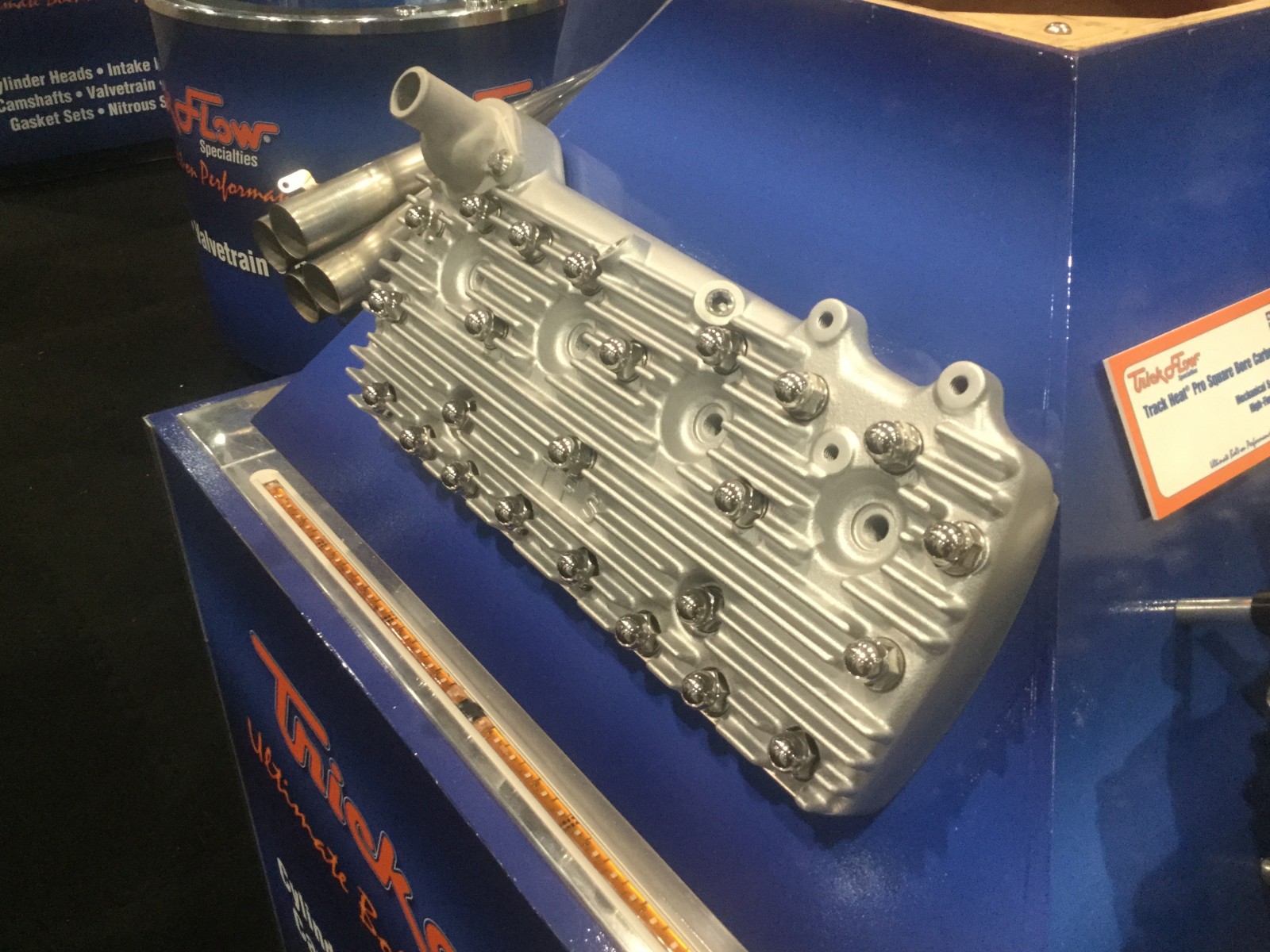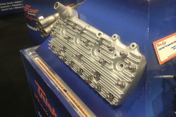 From the Ford Twisted Wedge to the LS GenX heads Trick Flow Specialties is known for their small block cylinder heads. Now Trick Flow is taking it old school and showing off a new line of Ford Flathead cylinder heads at SEMA 2015. These all aluminum cylinder heads bring modern engineering to classic Ford Flathead V8 style. It is the modern engineering that allows these new Flathead Cylinder Heads to flow more water through large water jackets. These cylinder heads have a natural aluminum finish and the fins help strengthen the head to prevent warping. These cylinder heads will fit on the Ford 8BA and Mercury 8CM engines. We are keeping an eye on these cylinder heads in hopes that Trick Flow continues to come out with more designs and finishes for their Flathead Cylinder Heads.