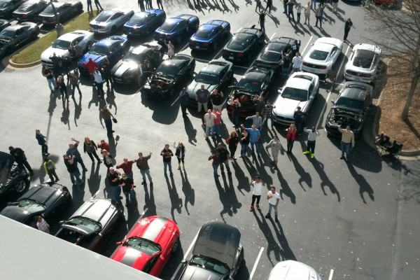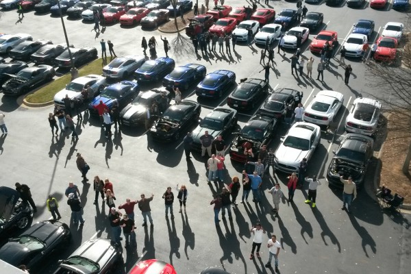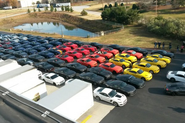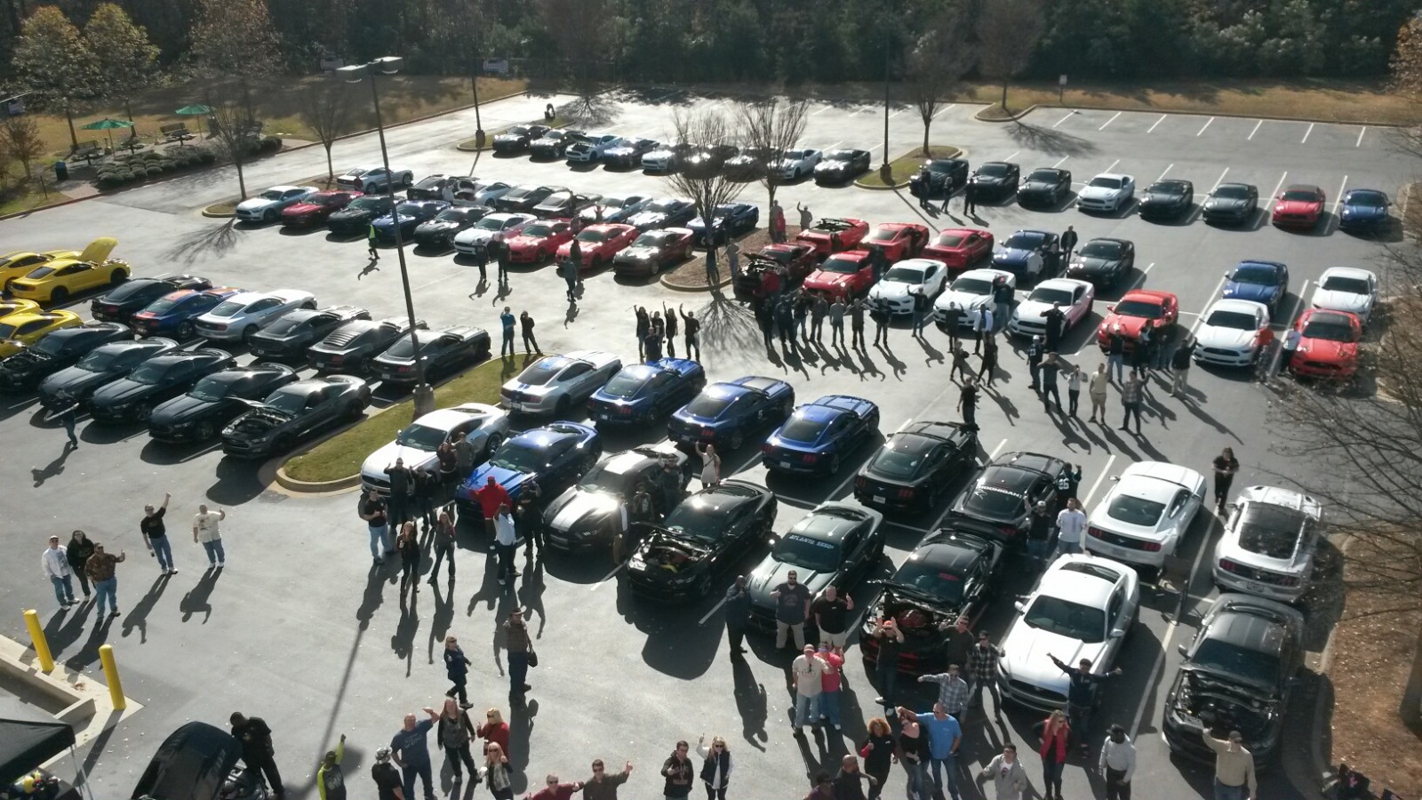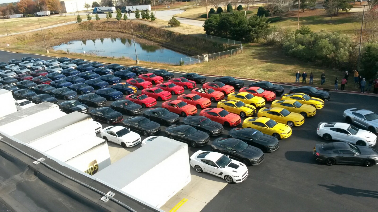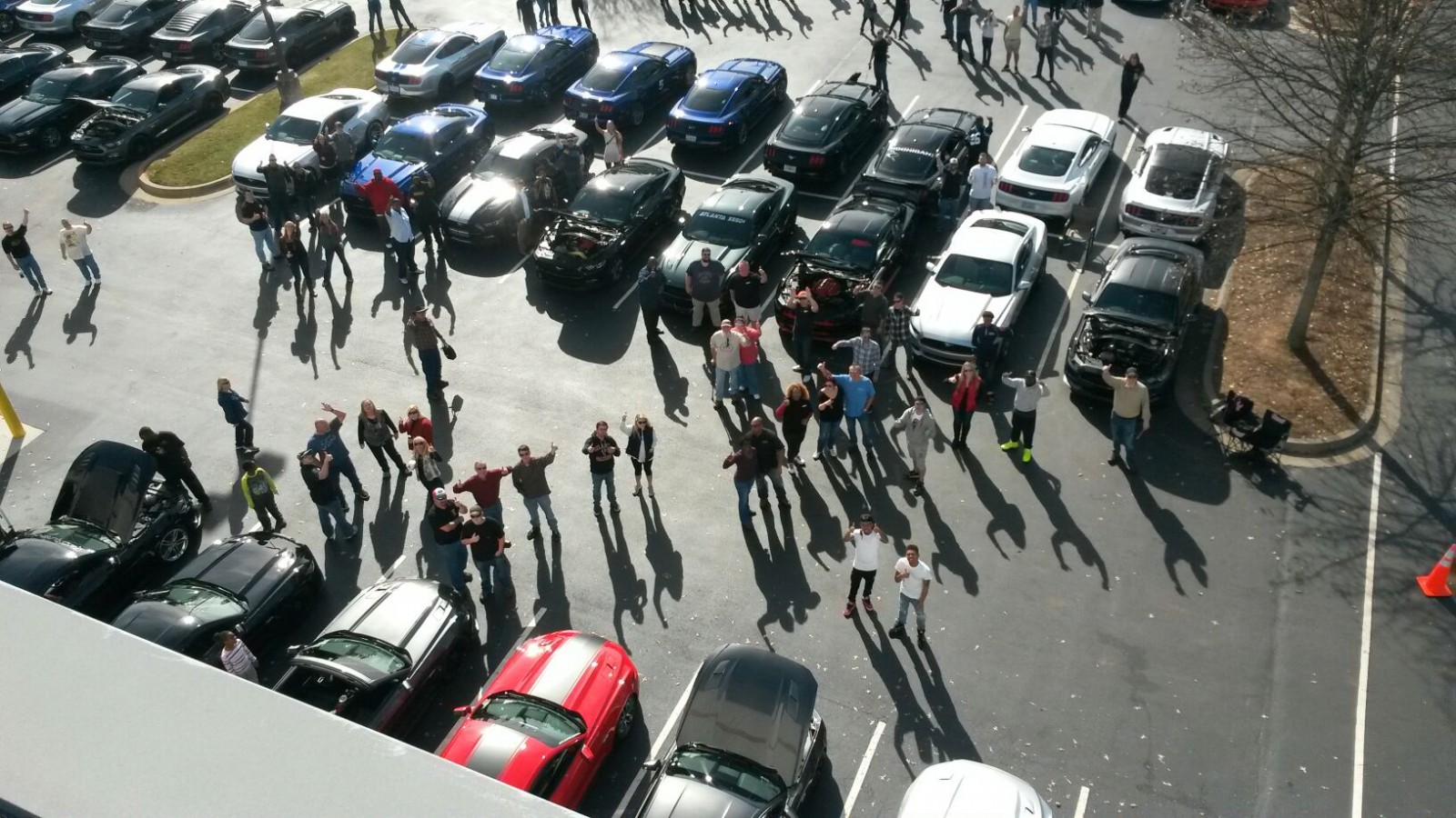 Ninety-seven S550 Mustangs from the Atlanta S550 Club gathered at Summit Racing Equipment in McDonough, GA and then made a 25-mile cruise up I-75 to The Varsity, a legendary drive-in restaurant in Atlanta. The gathering is believed to be the biggest congregation of sixth-generation Mustangs to date. Check out some of the photos courtesy of Summit Racing’s Steve Kester, and the short video below.
