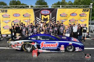 The two met once again Sunday in the final round where Line drove his Summit Racing-sponsored Chevy Camaro to a 6.611-second at 209.75 miles-per-hour run to better Anderson on a holeshot. This is Line’s 41st career victory and second consecutive at this event, which he’s now won three times. The victory also extends his series points lead. As the #2 qualifier, Line beat John Gaydosh Jr., five-time champ Jeg Coughlin and Allen Johnson in the earlier rounds.