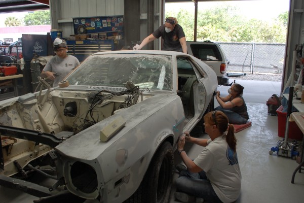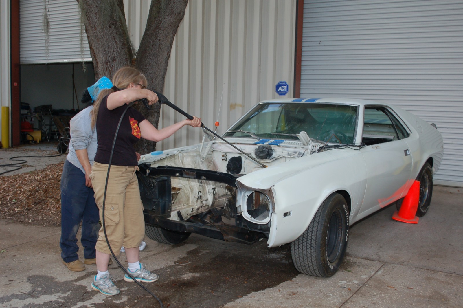 Robinson raced the car until the early 1970s, and it sat in storage for over 35 years until Karen purchased it. A strong advocate of involving women in the high performance and racing world, she assembled a crack team of female hot rodders to restore the AMX. Over 29 women eventually contributed to the restoration.