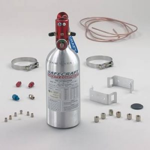 Standard LT fire suppression kits include a charged extinguisher, aluminum mount bracket, aircraft “T” bar clamps, 10 feet of discharge line, three spray nozzles with fittings, and the activation method you choose. Again, key features of the Safecraft LT fire suppression system are: