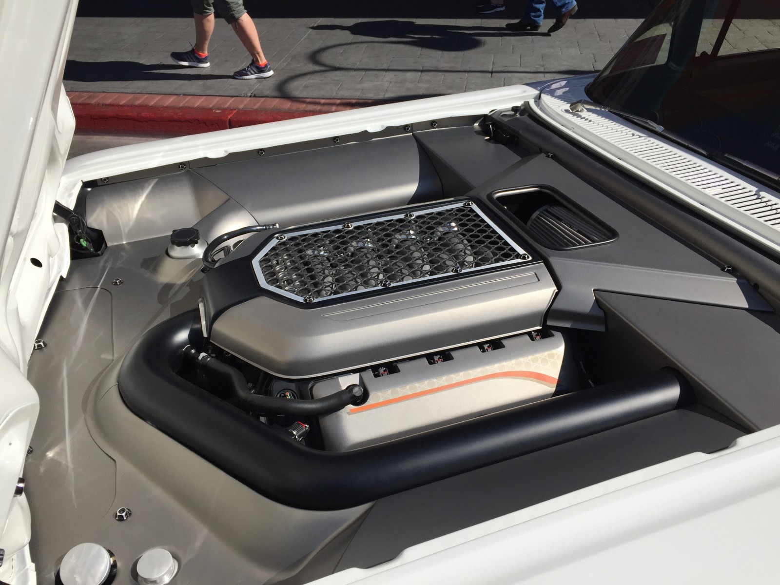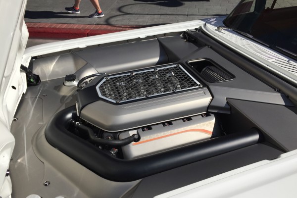 “The grilles are popular on this car — the honeycomb pattern — so we rebuilt all of the grilles on the car and then gave the same grille treatment to the intake cover,” Miller said. “Then we put the grille pattern in the paint. It all has to flow from the front to back, and on the inside and out, so you’ll see that treatment throughout the car.”