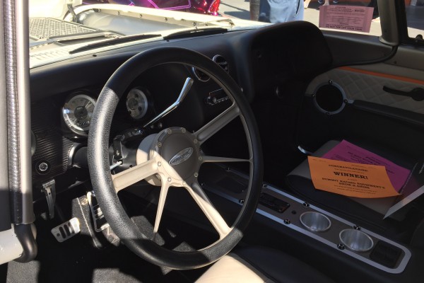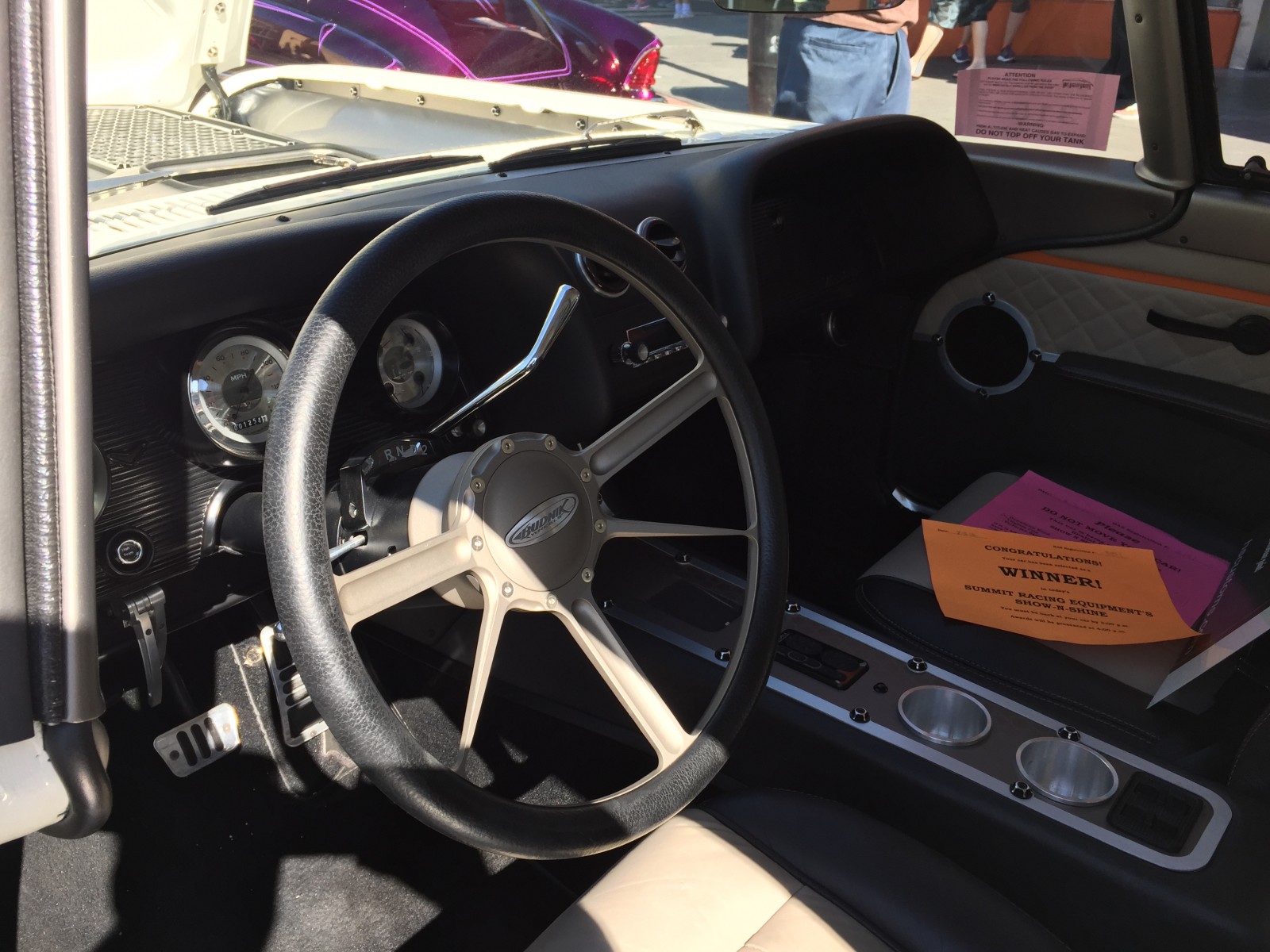 Using the Coyote engine as inspiration, Short and Miller continued to incorporate more modern upgrades. A custom made console holds an Ipad, and the stock dash features billet accents. A Retrosound stereo system provides the tunes, an A/C system allows Short to cruise in comfort, and an Accuair suspension system delivers a smooth ride.