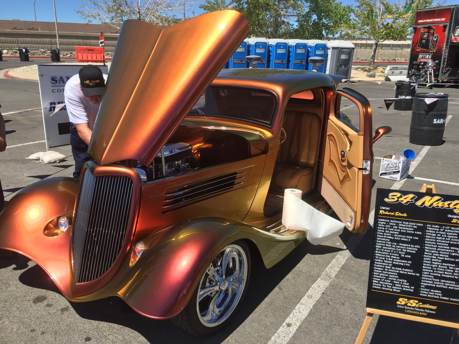 We decided to venture out into the 95-degree heat and head away from the downtown area. Stops included the Hot August Nights Poker Run check-in at the Summit Racing Retail Store in nearby Sparks, NV, as well as car shows at the Atlantis Resort and Grand Sierra Resort. While at the Atlantis, we met up with Summit Racing market specialist, Barry Flesher. As the guy in charge of Summit Racing’s product offering for the street rod market, Flesher is about as knowledgeable as they come regarding vintage street rods and customs. He attended his first National Street Rod Association show with his father when he was seven months old and has been immersed in the hobby ever since. Flesher has built and/or owned dozens of street rods.