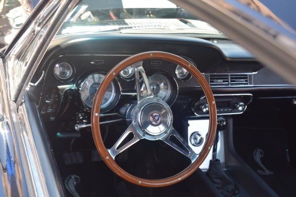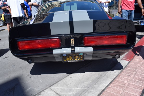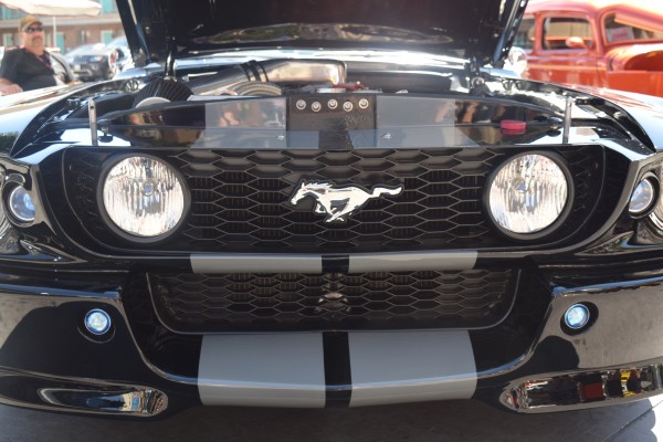 Using trial and error (“I ordered four grilles from eBay,” he said.), Stuart fabricated a custom front grille based off a 2005 Mustang GT grille and then built a one-off trim piece to dress up the front of the engine bay. He also rebuilt the trunk interior to give it a cleaner appearance and finished off the back-end with 1968 Mercury Cougar taillights. He then tasked Fleet Body Worx in San Jose, CA with laying down the GT500’s beautiful paint and racing stripes.
