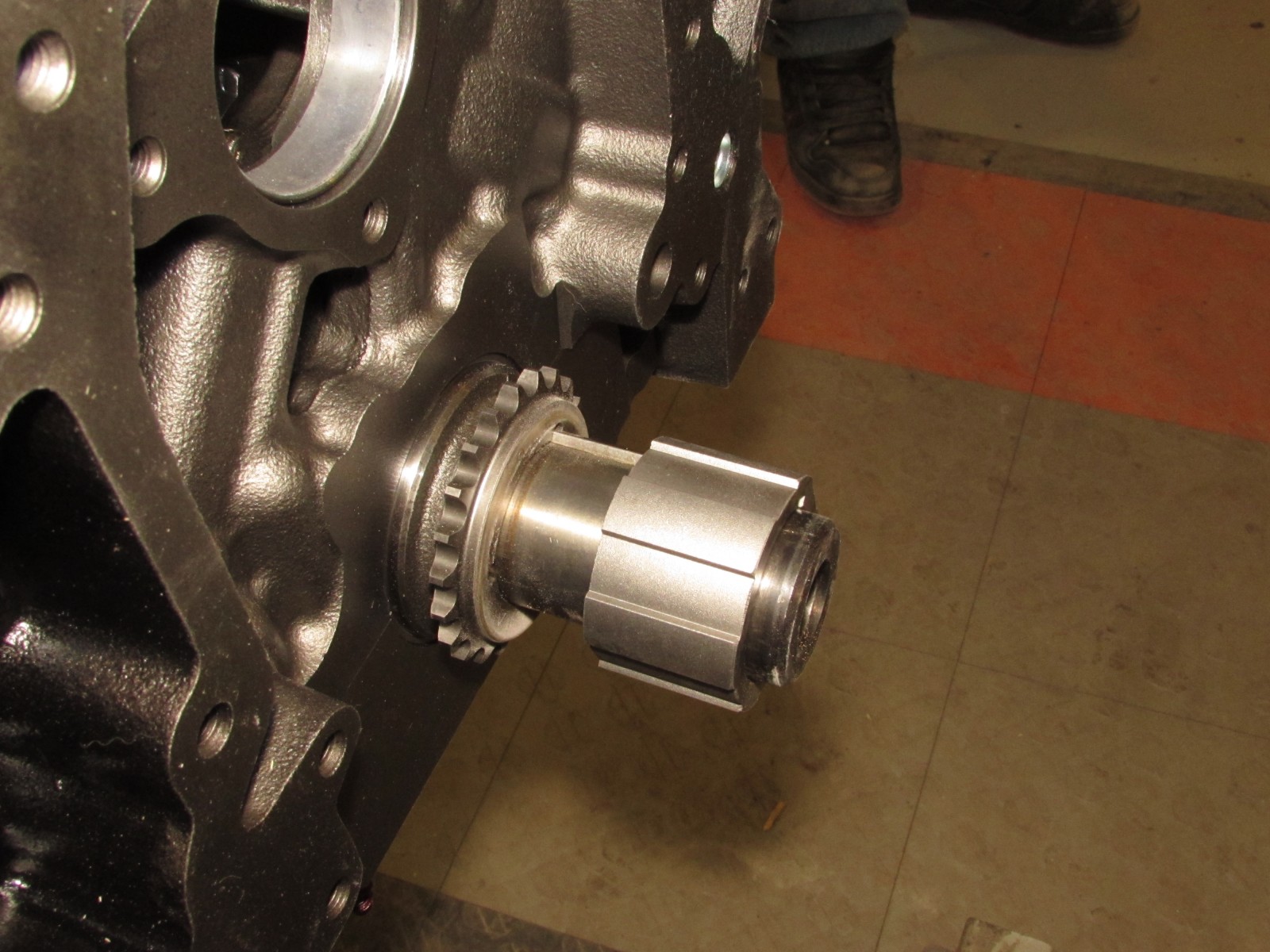 First order of assembly business was slipping the crank gear and oil pump ring from the COMP Cams timing set onto the crank snout.
