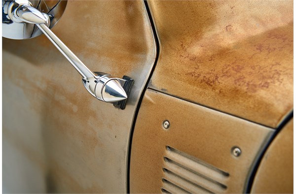 Oxidation has set in underneath the clearcoat, slowly evolving the Ford’s finish. What was once grained sheetmetal has now developed into a natural patina that treats your eyes to hints of bronze, silver, and gold. Each panel looks completely different than the next!