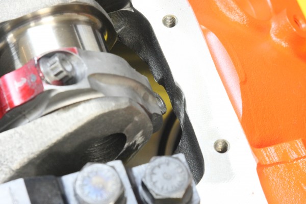 The longer stroke in the 582 moves the piston about 200 feet-per-second faster than it would in the 540 combination (6,869 FPS vs. 6,673 FPS @ 6,000 RPM). Petralia upgraded the Lunati 4340 steel I-beam connecting rods with ARP2000 bolts to handle the higher stress loads.