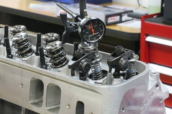 That original 556 big block had cylinder heads with 340cc intake runners. If not for the almost 600 cubic inches of engine, Petralia says he would not have used a cylinder head as big as Trick Flow’s CNC-ported PowerPort® 365 head on a street engine. He swapped out the stiff .900 inch lift solid roller valve springs that come standard on the Trick Flow heads for a softer spring set from COMP Cams. The 1.539-inch diameter dual springs match up well with the tall valves, yet make enough pressure to control the heavy intake valves above 6,000 rpm. The COMP springs installed at 2.010-inch height, giving .105-inch clearance before coil bind, which is plenty.