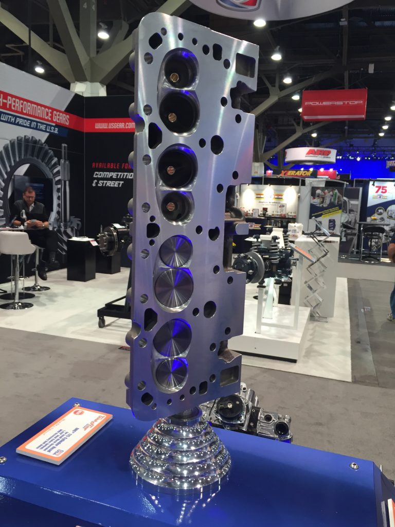 Trick Flow’s DHC Small Block Chevy cylinder heads on display at the 2016 SEMA Show in Las Vegas.