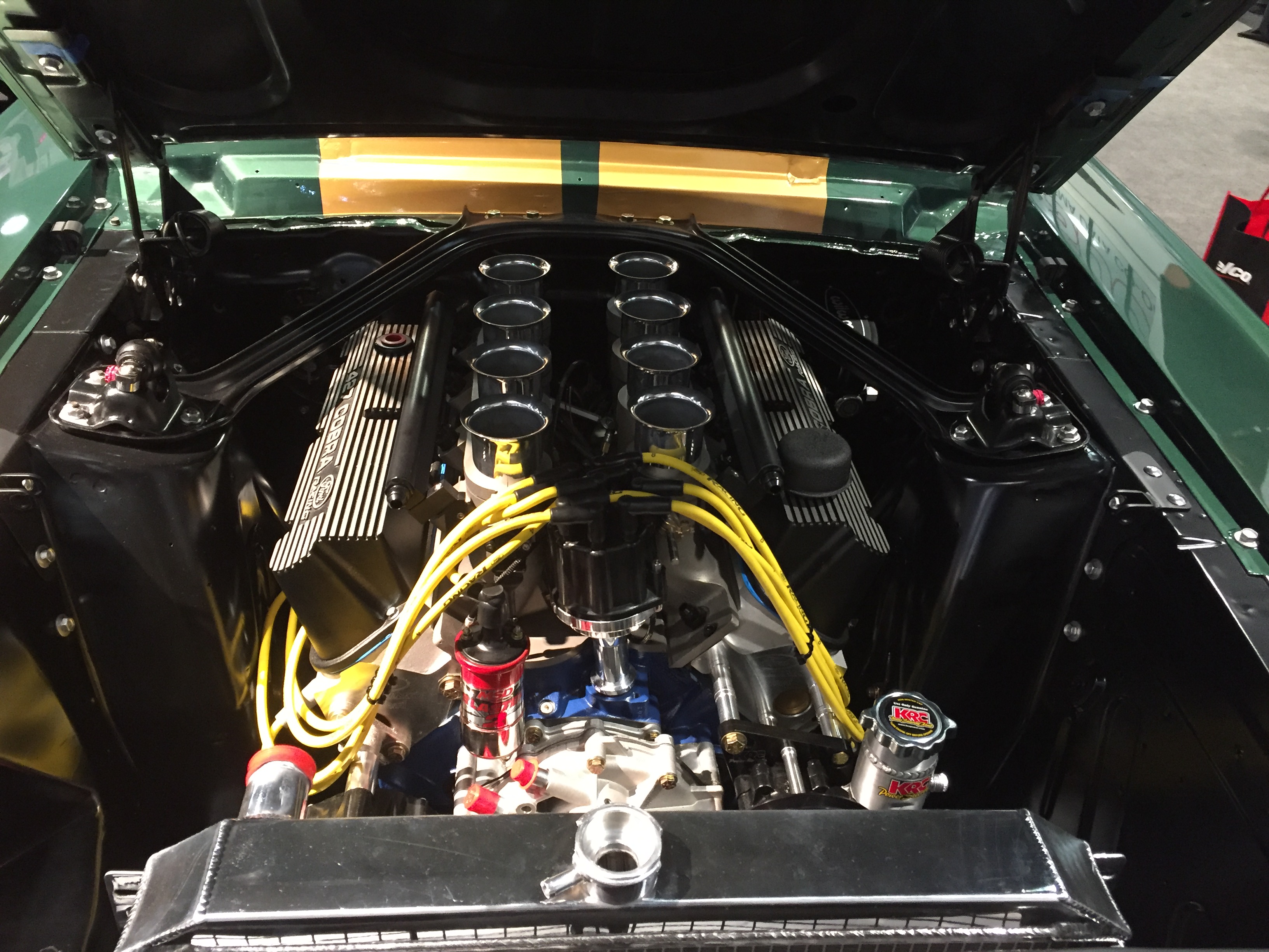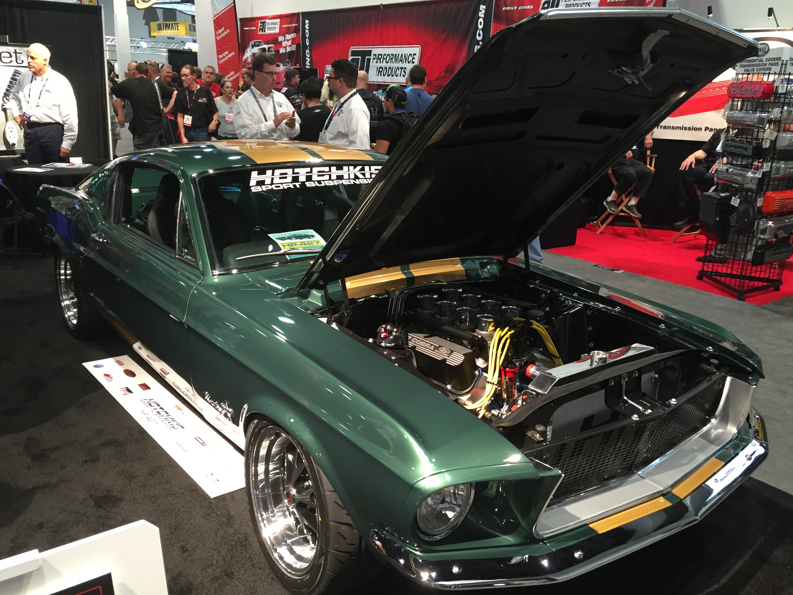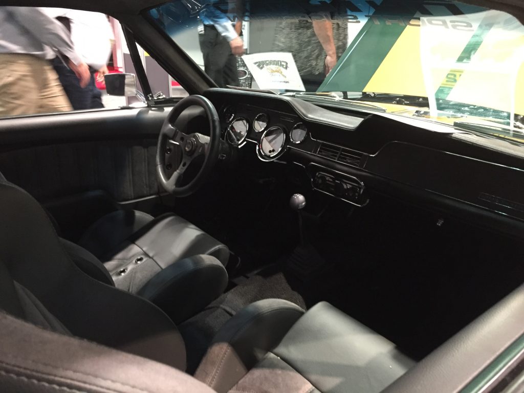 The HP-427 Mustang features a Hotchkis Total Vehicle Suspension with Hotchkis 1.5 performance shocks. The Hotchkis guys then worked with Summit Racing to obtain many of the other parts on the car. Wilwood Superlite 4R brakes with 13-inch rotors are tasked with slowing down the 530-horsepower pony. The car’s Hillborn-topped 427-cubic-inch powerplant is attached to a Tremec TKO 6-speed transmission which transfers power to a Currie 9-inch rear-end. The wheels and many trim pieces are from Scott Drake.