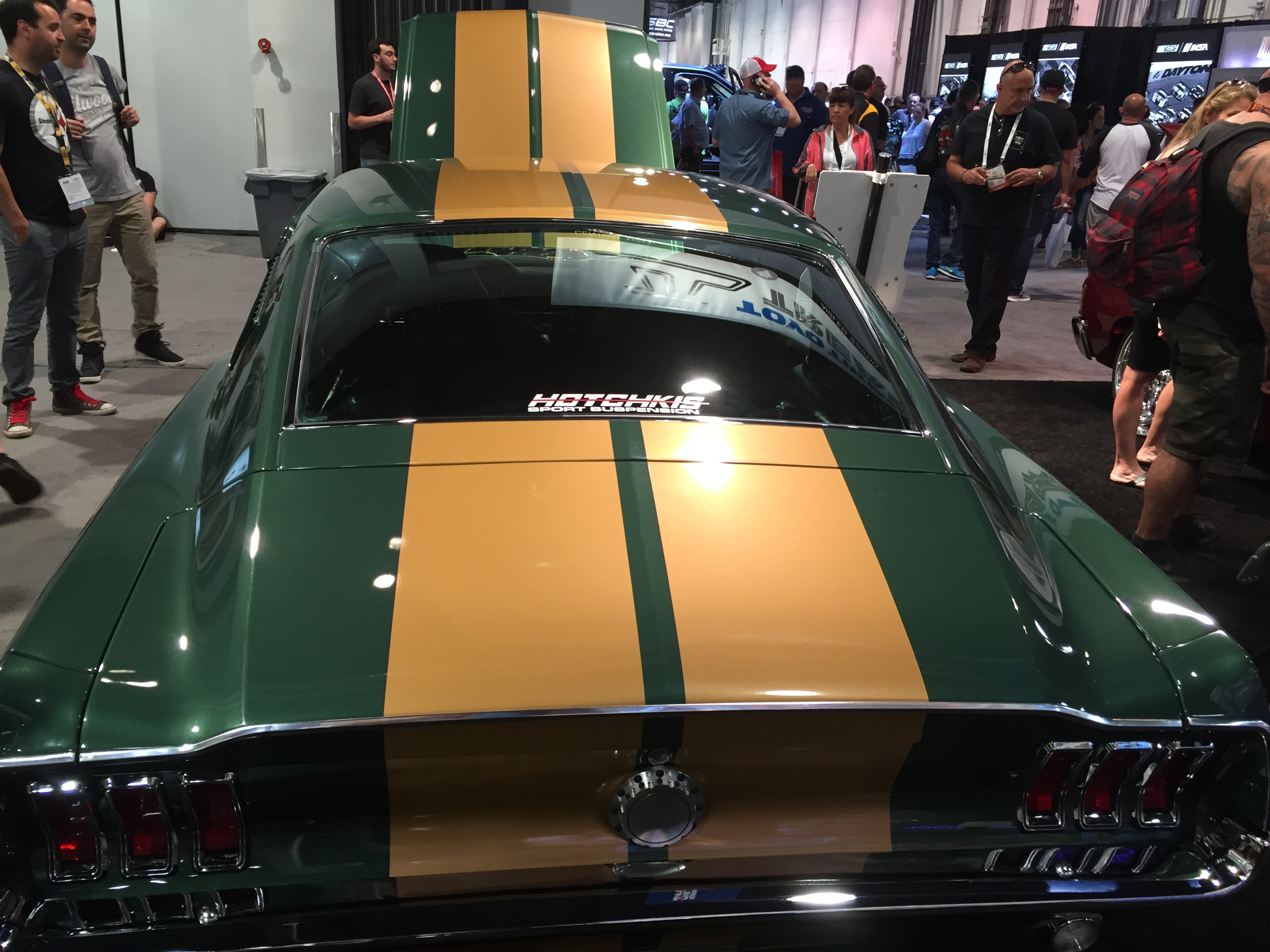 The car is covered in Huntington Green paint with gold flake.
