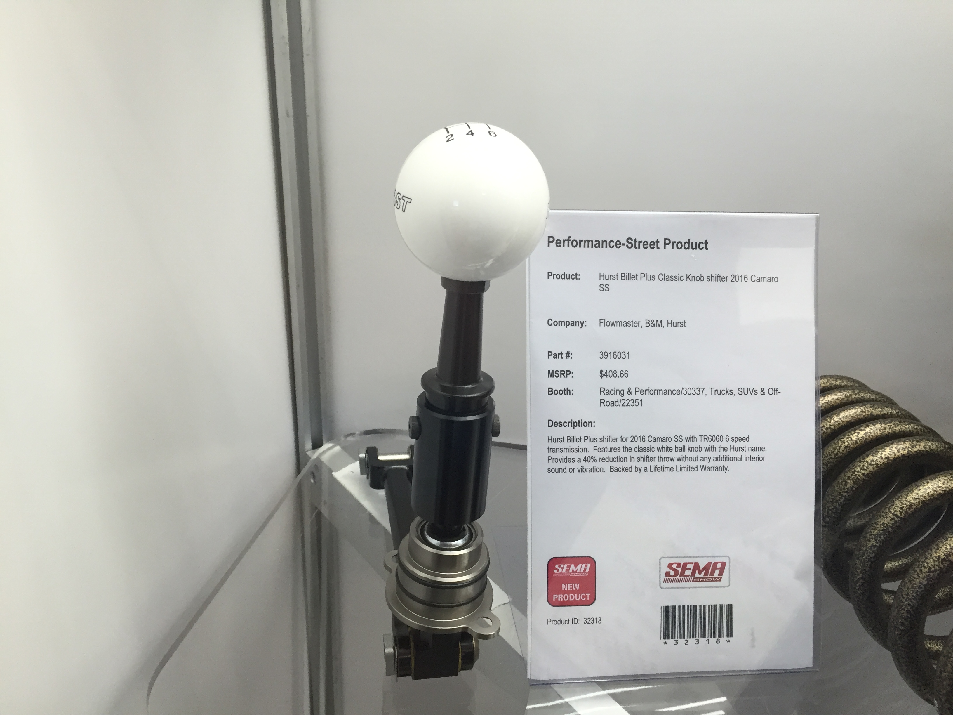 Made for 2016 Camaro SS cars with a TR6060 6-speed transmission, this shifter features the classic white ball knob with the Hurst name. It provides a 40 percent reduction in shifter throw without any additional interior sound or vibration.