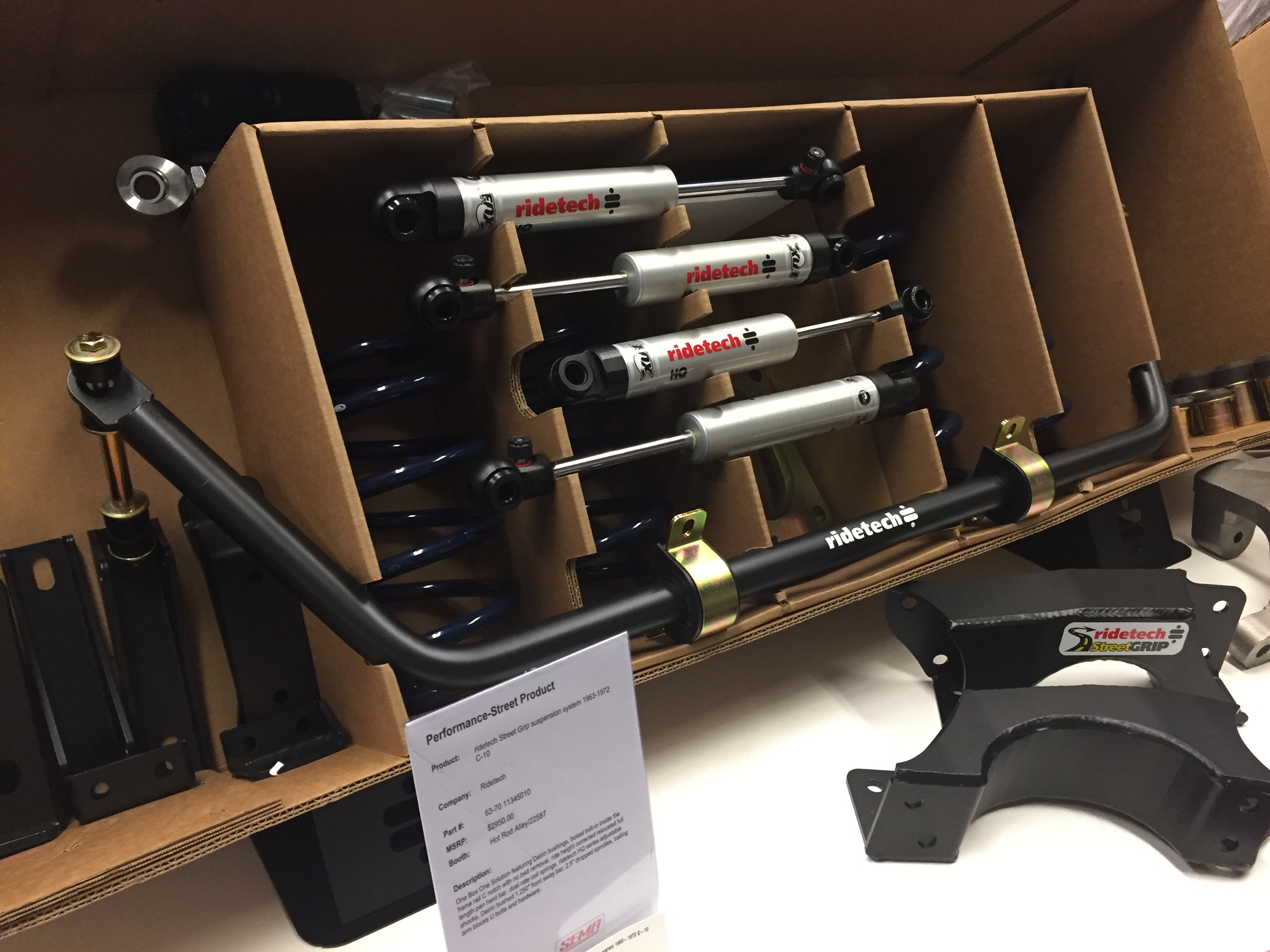 RideTech now makes a version of its popular StreetGrip suspension for 1960-66 Chevy C-10 pickups. It comes with a ride-corrected, relocated, full-length panhard bar; dual-rate coil springs, HQ-series adjustable shocks, Delrin bushed 1.250-inch front sway bar, 2.5-inch dropped spindles, trailing arm blocks, U-bolts, and hardware.