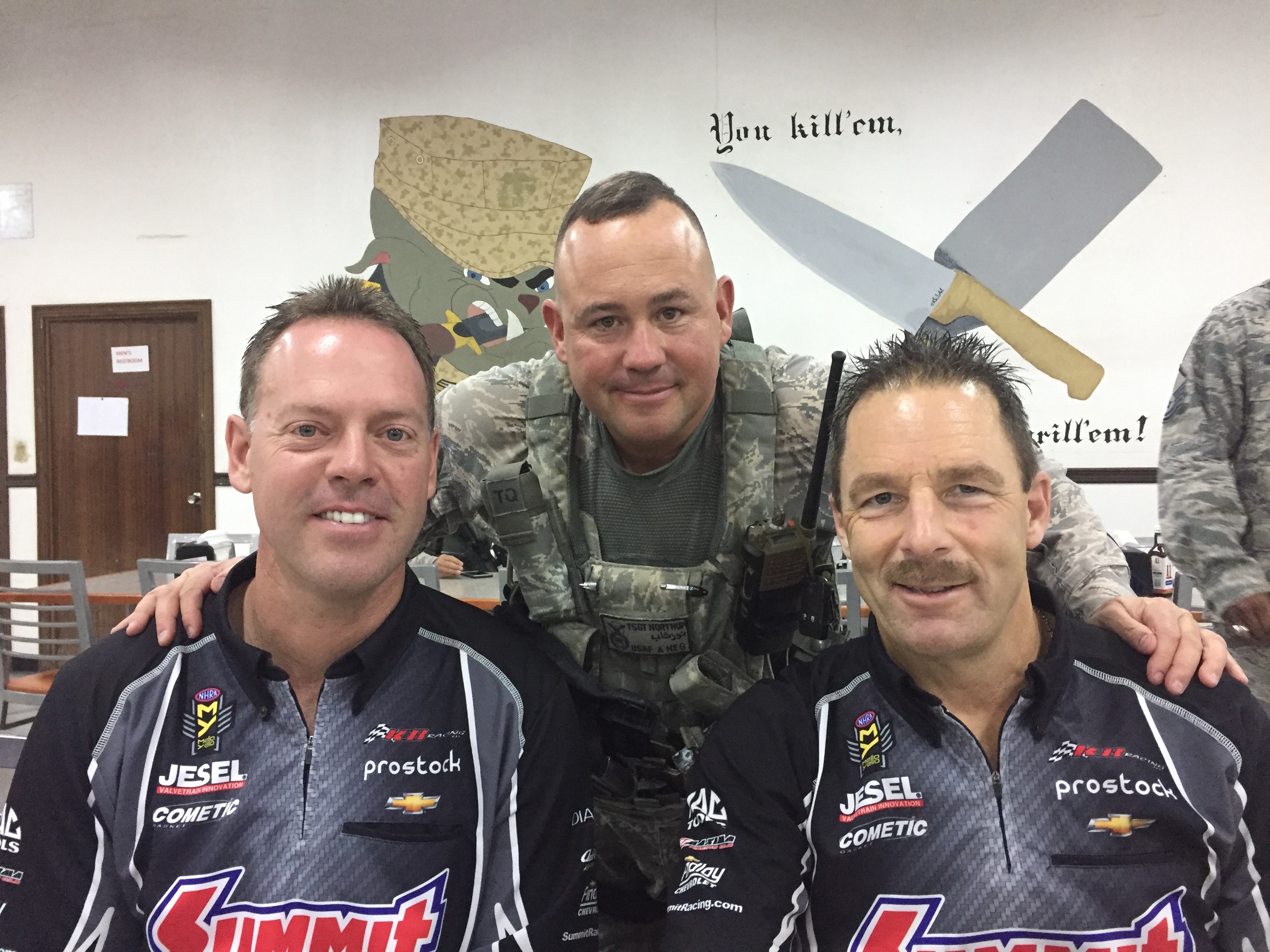KB Racing driver Jason Line, who recently won his third Pro Stock world championship in 2016 behind the wheel of his Summit Racing Chevrolet Camaro, has been part of the annual troop-morale mission since 2008. The pre-holiday visit never fails to incite a fresh wave of gratitude for the sacrifices made by U.S. troops and their families.
