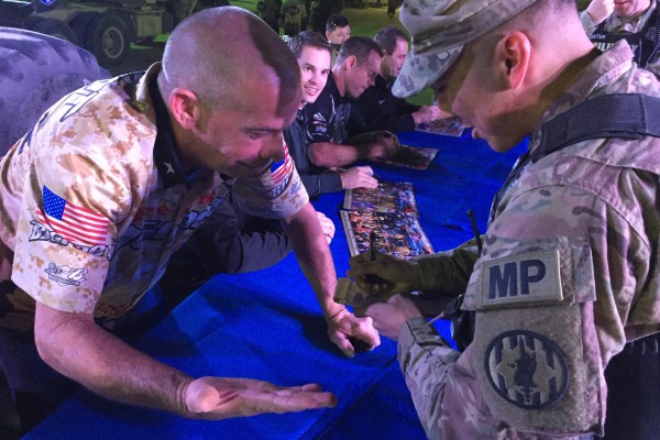 It took a lot to get the truck here, but the motivation was there for all of us. The whole reason we did this was for our troops. After 28 years driving and 30 in the business, to be able to say that I’ve been to Kuwait and run over cars in front of our troops is a rare privilege, and one that means a lot to me. That’s heartfelt, and it goes all the way through our group. This trip and this whole experience mean a lot to every one of us.