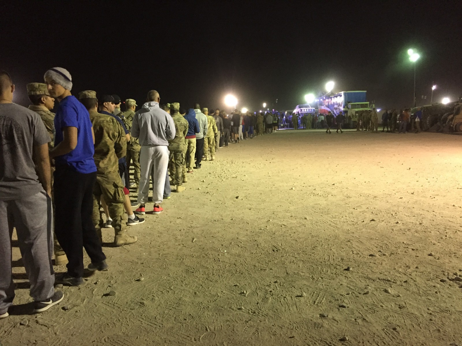 The guys and gals over here protecting us, they made this possible. We couldn’t have gotten the truck here without them. There were so many people here to see us tonight, and they just kept coming across the desert from the bunkers and the chow hall and everywhere. When the truck came back down to idle, I could hear them cheering – that’s when you know you’ve got a good crowd, and I love them all.