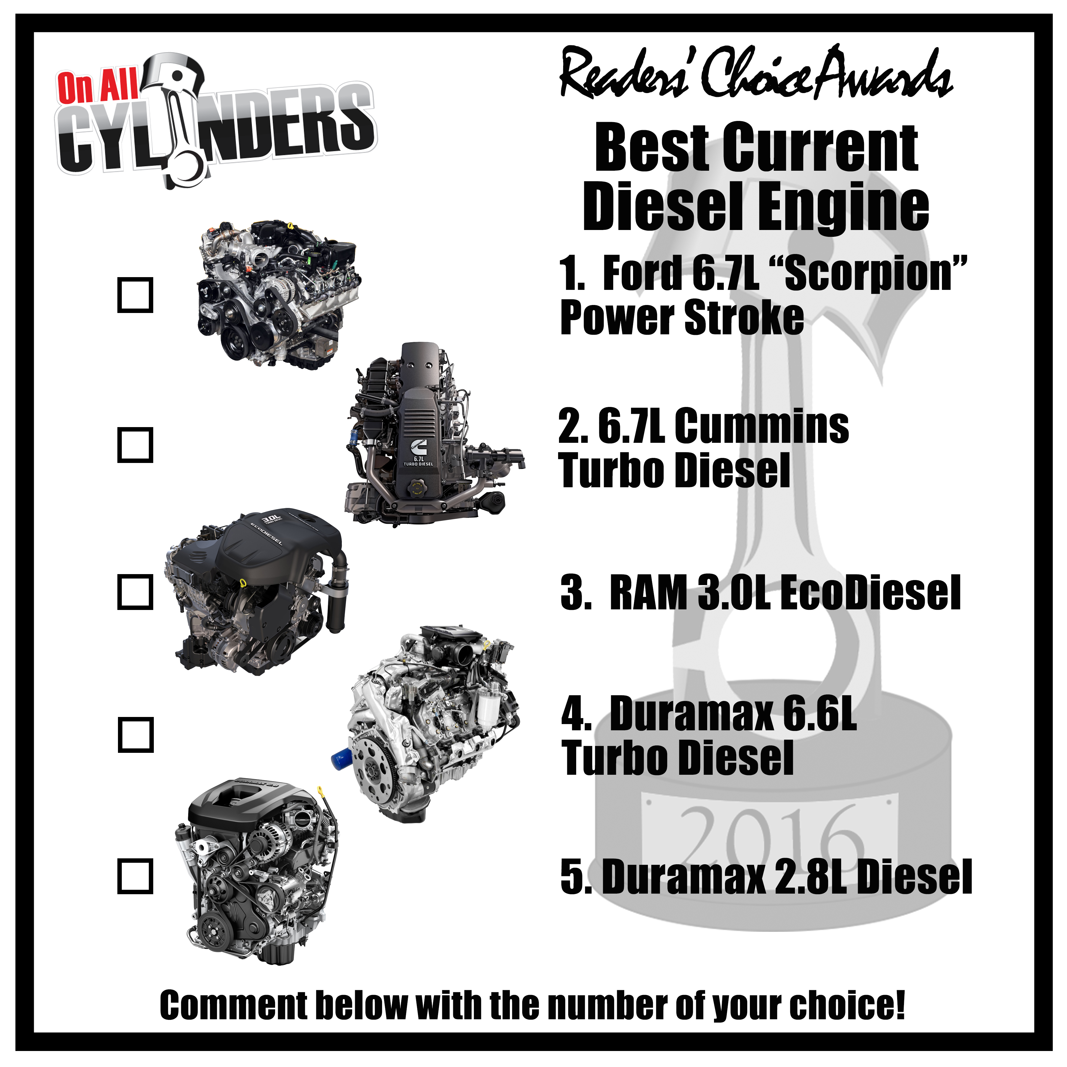 Did you hear there was an election in 2016? Yep—we could only be talking about our Readers’ Choice Awards. You got to pick winners in a variety of auto-related categories, including Best Full Size Truck, Best Diesel Engine, Best Build Style, Best Aftermarket EFI Manufacturer, and more.
