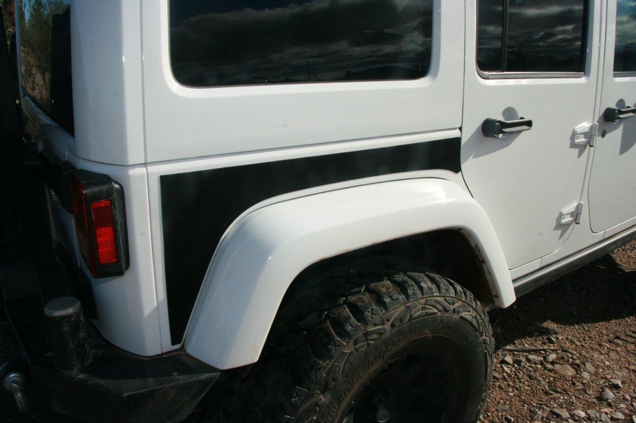 The magnetic panels are designed to take a beating on the trail and still adhere to your Jeep’s metal skin. For transportation, they roll up and can be kept stored in their original box. While driving to and from the trails or malls, do not leave them on at speeds exceeding 55 mph. Above that speed, occasional side winds or wind shear due to large trucks or buses, could dislodge a panel sufficiently to allow the wind to peel it off your Jeep.
