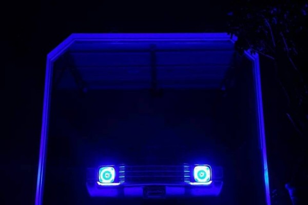 Bowser said he “replaced the engine with a crate 350, lots of chrome accessories. I just did some restoration to the dash recently. 18-inch front and 20-inch rear wheels. Oracle blue LED Halo headlights. Matched the grille platinum to the car. It’s a constant project.”