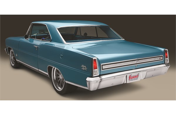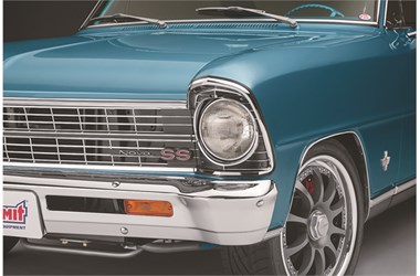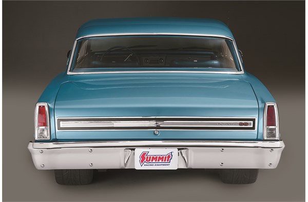 Discovering more body filler than actual sheetmetal, the decision was made to replace the damaged rear quarters with reproduction panels, then re-wrap the car in a fresh coat of the Nova’s original Marina Blue paint. Completing the factory fresh look, much of the chrome trim was replaced with hard-to-find NOS (new old stock) pieces. “The goal was to make it as nice as possible while staying true to what the car was originally,” Wilkins said.