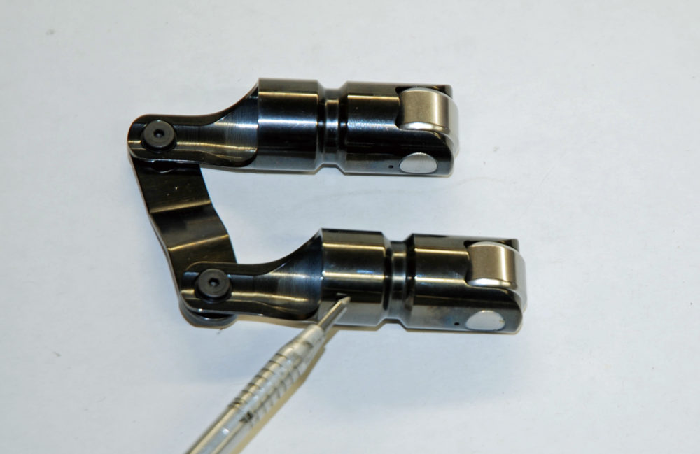 Right behind them is Jesel’s “Dog Bone” series roller lifter. These lifters maintain alignment by way of a dog bone-shaped steel retainer that bolts to the cylinder block (a simple drill fixture is used to machine the block so that it can accept the lifter).