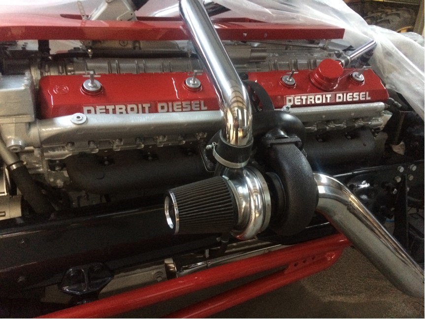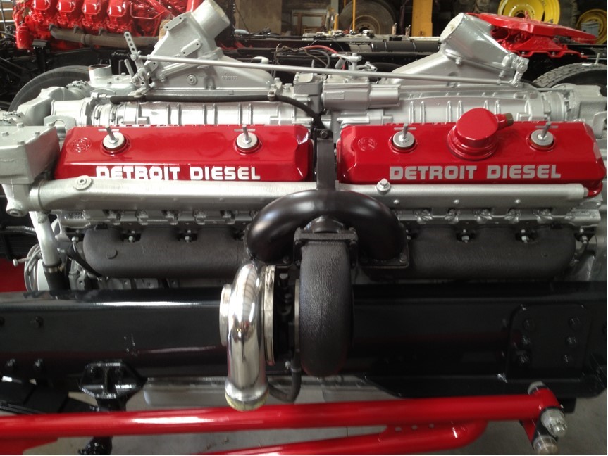 Sitting atop this modified Ford truck chassis is Detroit Diesel twin-turbo 16V71 engine that’s creating north of 800 horsepower. Handling that power is a heavy-duty Allison HT750DRD five-speed automatic transmission.