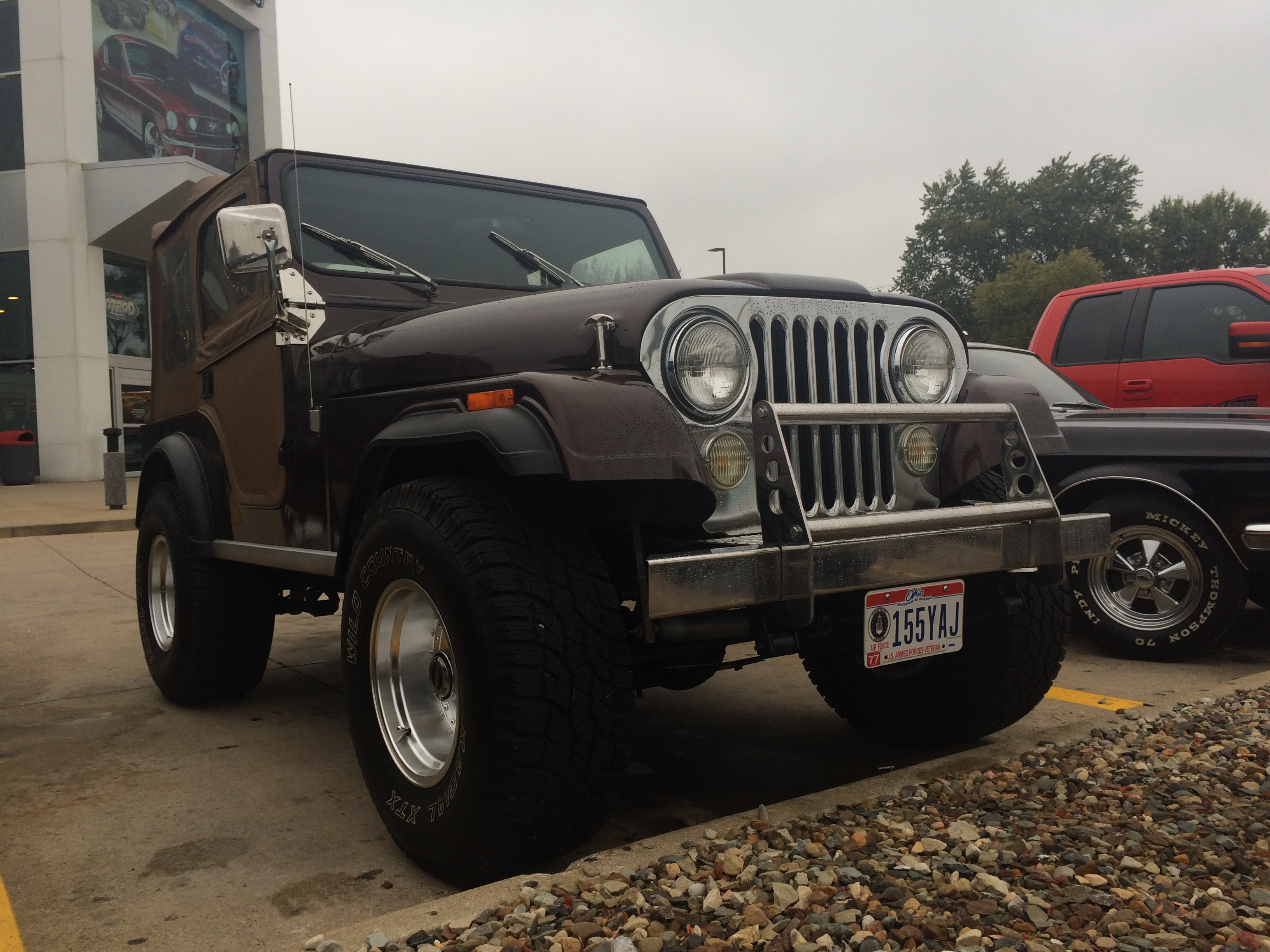 The front fenders and slightly more aggressive windshield rake tell us that this is a 1976-83 edition. American Motors (AMC) had purchased Jeep from Kaiser-Willys in 1970 and made some key improvements to the CJ series throughout the decade. The front fenders were stretched to accommodate AMC’s inline-6 engines and, in 1976, the windshield pitch was revised to improve aerodynamics in the name of fuel economy. The Jeep’s owner confirmed our hypothesis, telling us this was indeed a 1977 model.