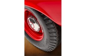 Wheels and Tires: Chrysler 15″ steel wheels and poverty hubcaps, Coker Firestone Wide Oval F70-15 front tires and Dragster 8.20-15 rear tires
