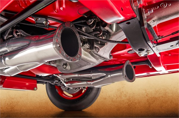 The Coronet moves out on steel wheels an inch larger than factory spec, and when the rubber hits the road, it’s Coker reproduction Firestone rubber—Wide Ovals up front and pie-dish Dragster tires around back.