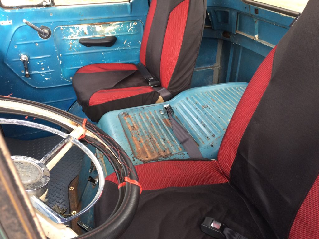 It’s got a cool work-truck vibe, with a flat black paint job over a straight and rust-free body. In the interior, you can see the “doghouse” where (presumably) a Ford 144, 170, or 240 cubic inch inline-six engine lives.
