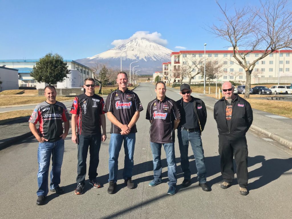 Team Summit stops for a photo outside of EOD with Mt. Fuji in the background.