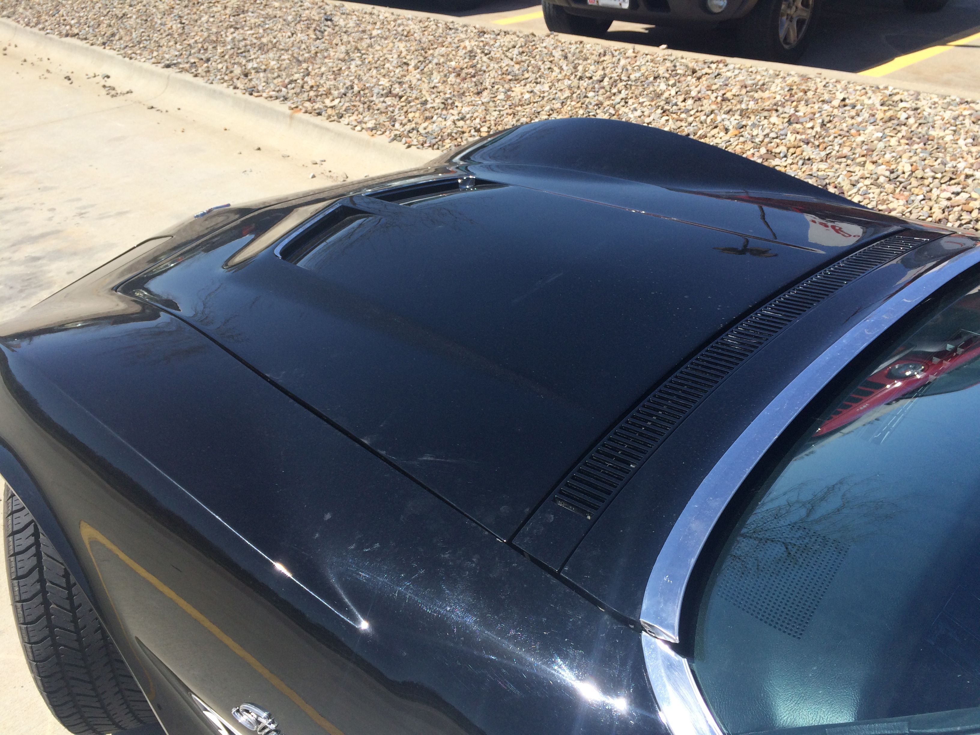 This particular ‘Vette is wearing the big-block style hood, with a small bulge and chromed accents. (Not to be confused with the L-88 style hood, which was similar, but had a larger center bulge.)
