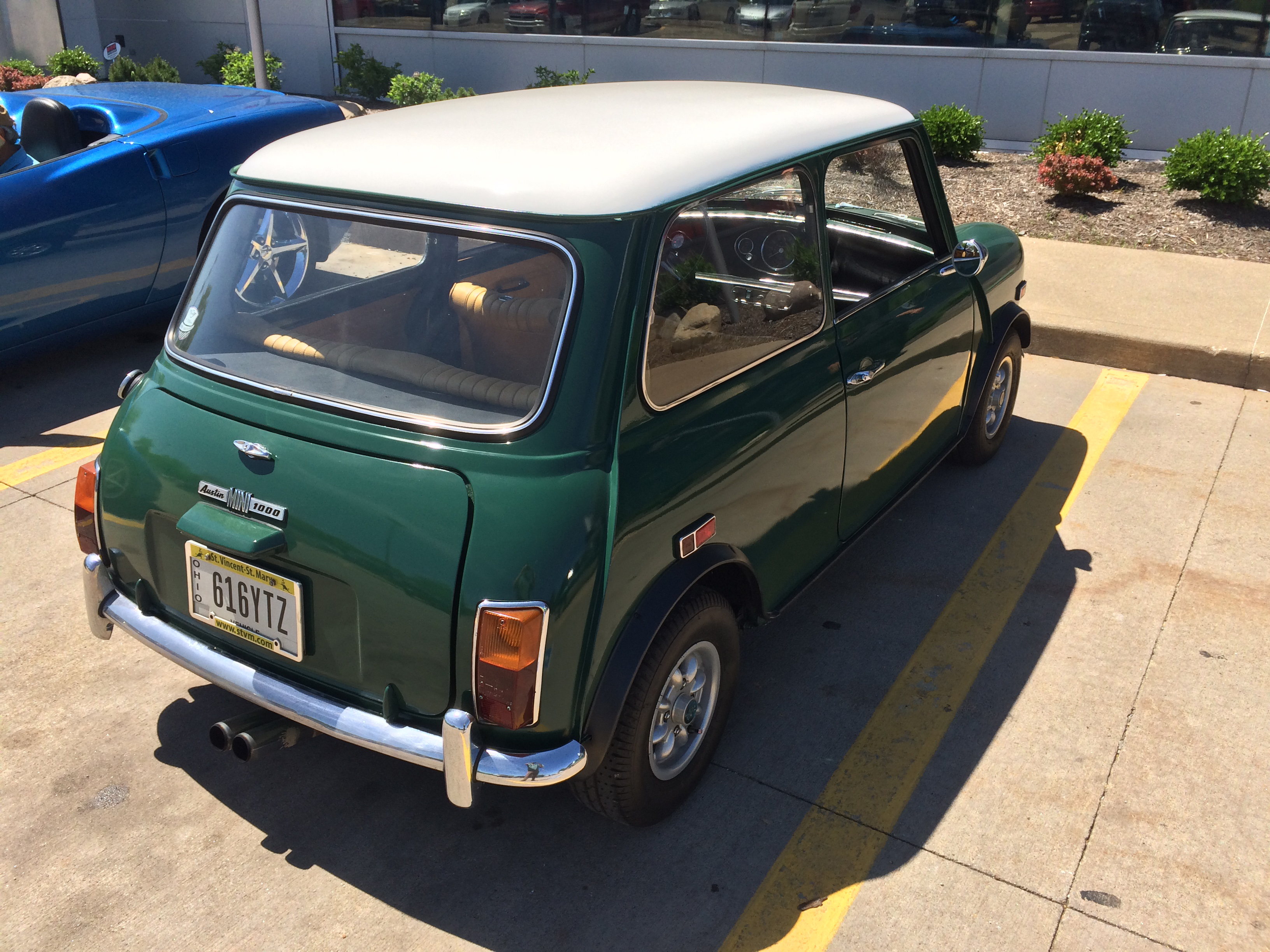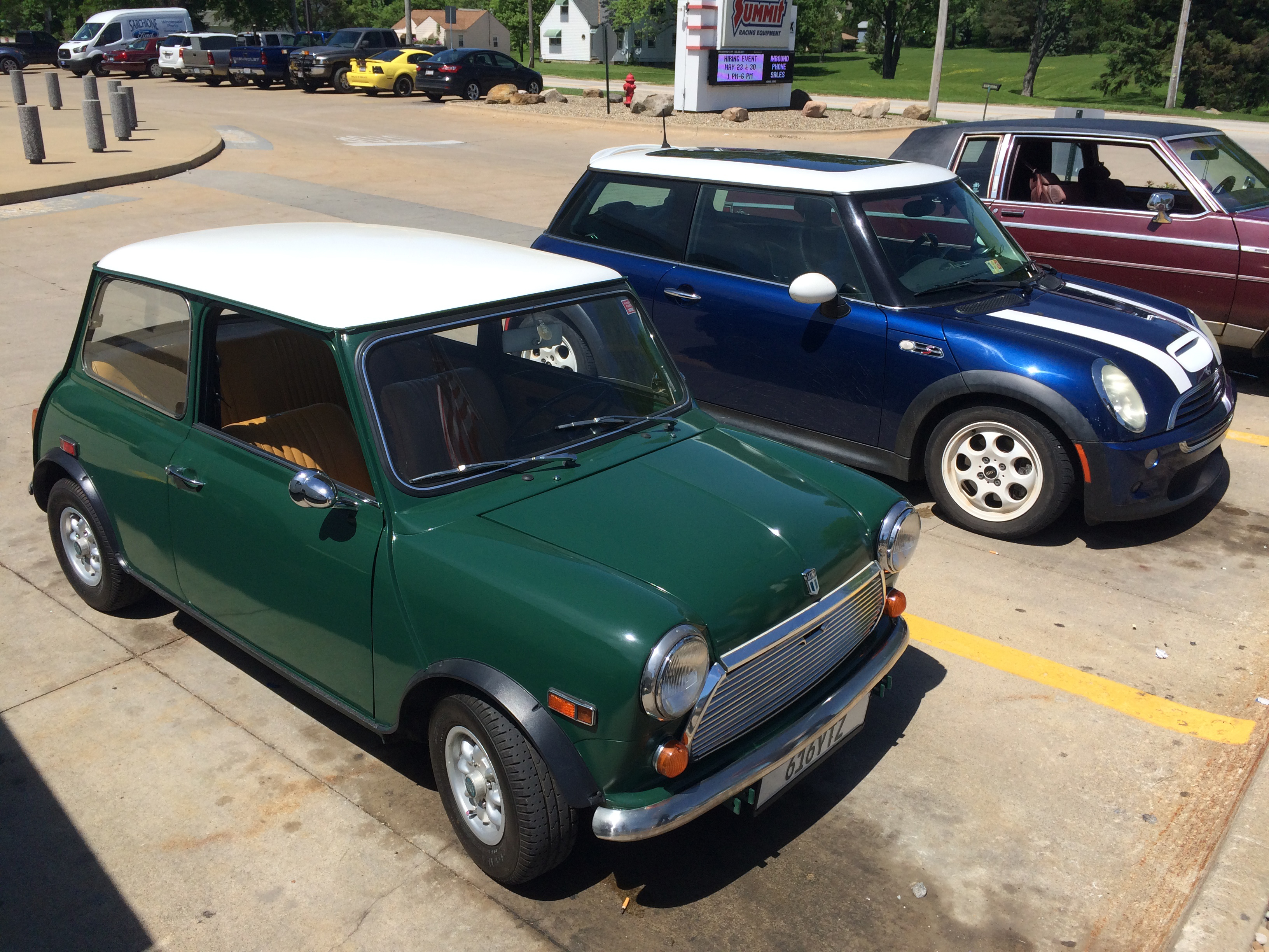 During our impromptu parking lot interview, and new generation BMW-era Mini pulled into an adjacent lot space, giving us a good demonstration of the original’s diminutive size.