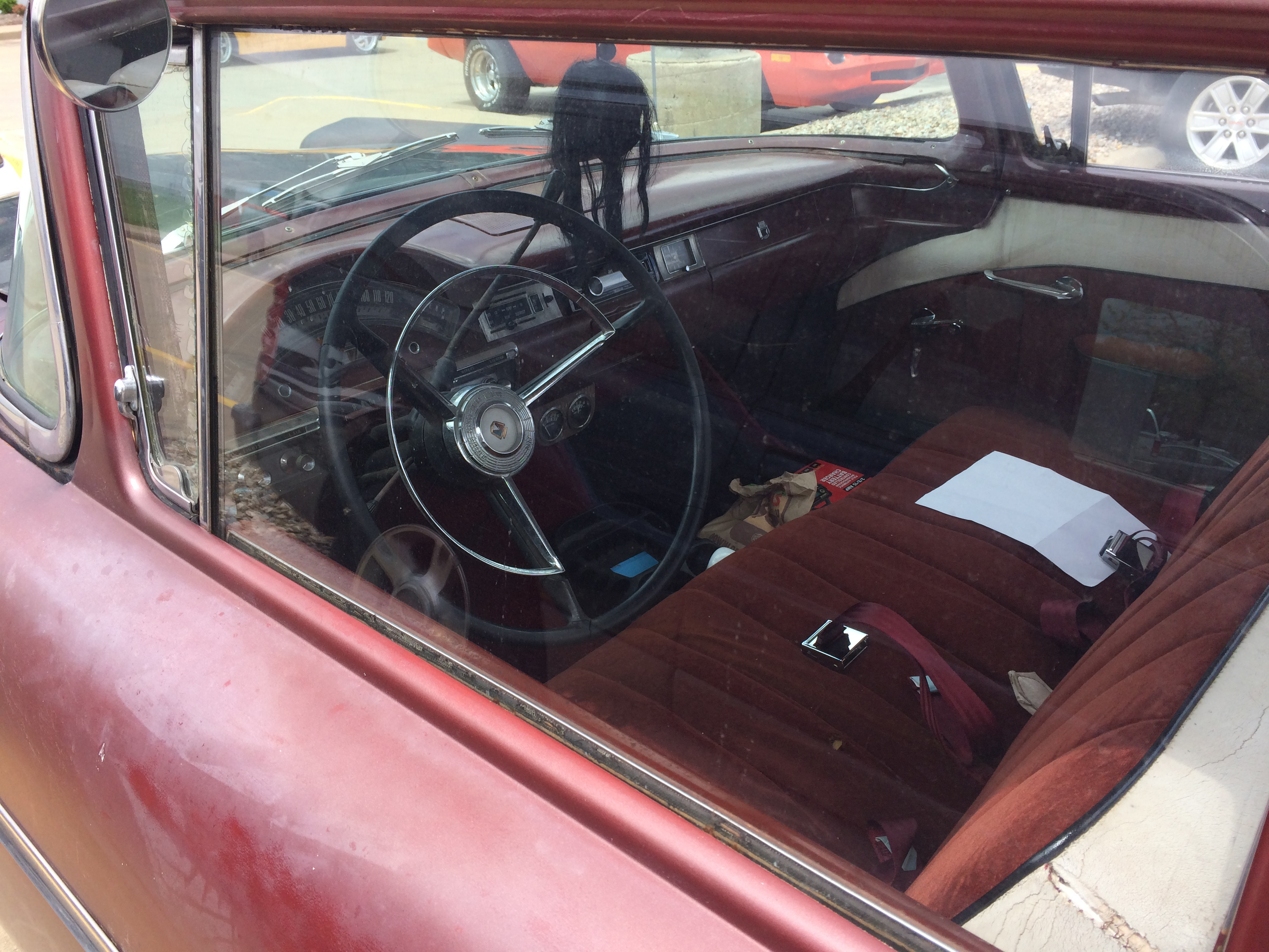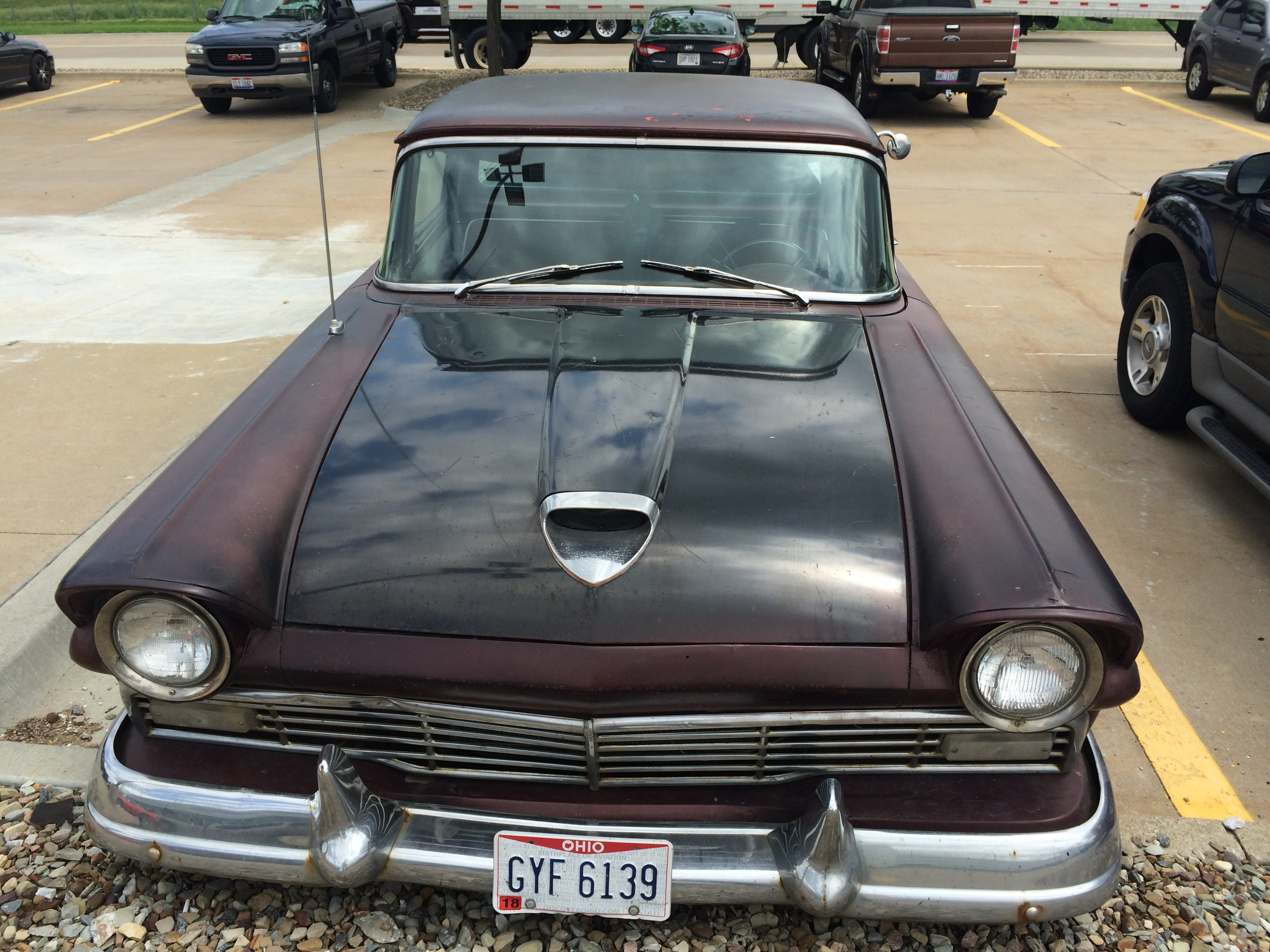 We think this one’s wearing the hood (with scoop) from a later year Fairlane 300/500, maybe 1958? We’re not entirely sure, so let us know what you see in the comments below.