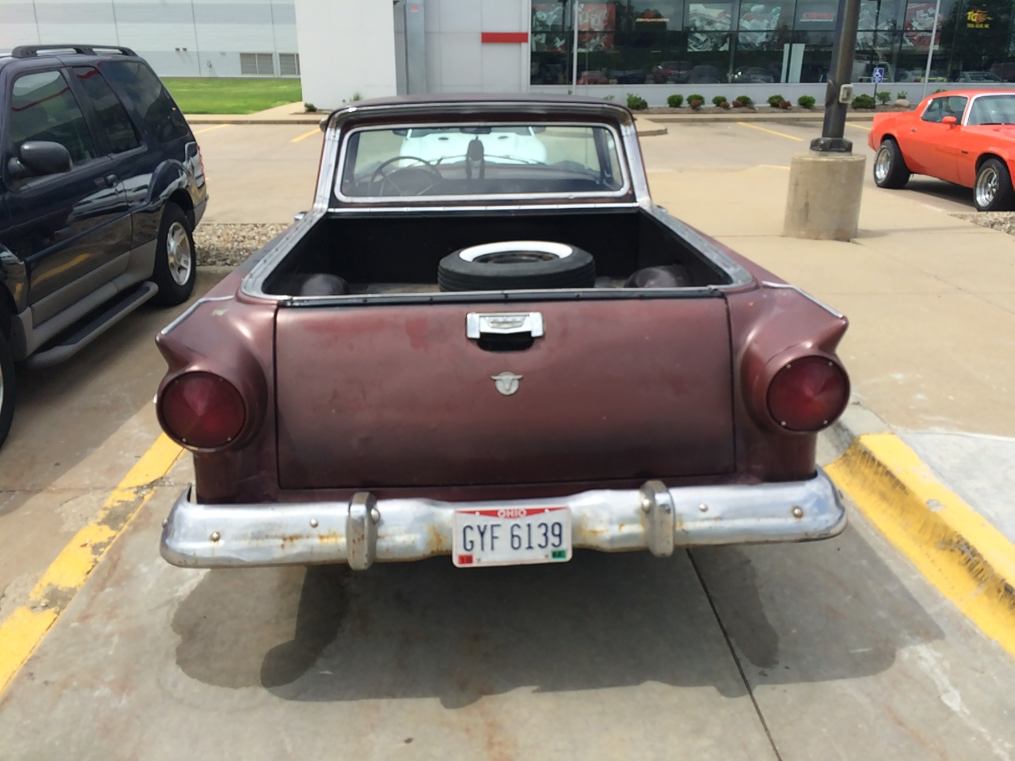 This particular Ranchero is a 1957 edition, easily identifiable (like the Fairlane and Skyliner) by its single headlights. It rode on Ford’s full size passenger car platform before moving to the smaller Falcon-based chassis in 1960.